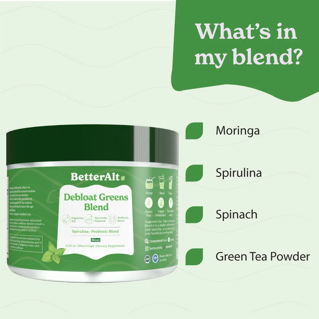 BetterAlt Debloat Greens Blend Digestion Aid Ayurveda inspired Probiotic Spirulina.Probiotic blend.Mint #Betteralt #ayurveda #debloatgreensblend #debloatgreens #spirulina #tiktokshop #ViralBeauty #probiotics