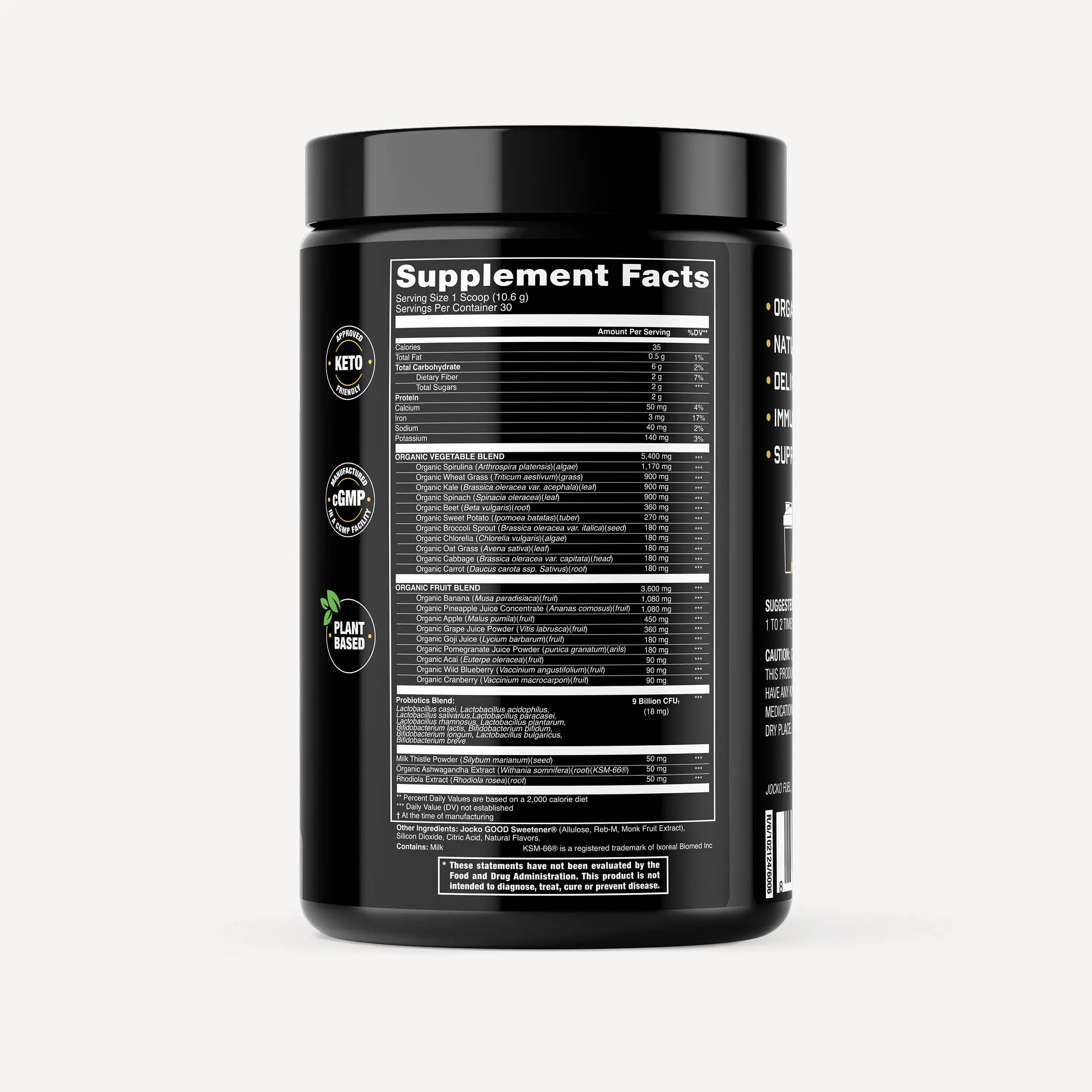 Start your day with Jocko Fuel Greens Powder to fuel your body with organic greens, digestive support, and immune-boosting benefits, all in one easy-to-mix scoop.