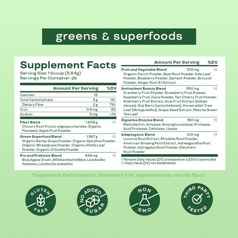 ·Daily Greens Routine: Greens taste amazing, making it easy to stay consistent and feel your best. Add it to a smoothie, mix it into juice or water, or put it in your favorite recipes for an instant upgrade to your daily wellness routine.
