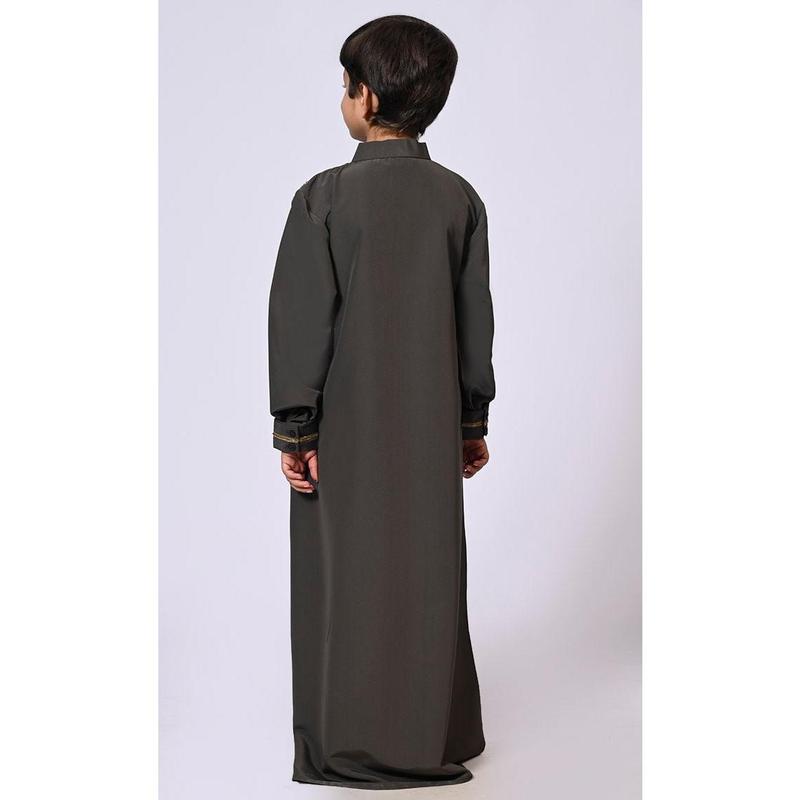 Introducing our premium Boy's Thobe, meticulously crafted for the discerning gentleman who values both style and functionality. This exquisite garment combines traditional elegance with modern convenience, making it a standout piece in any wardrobe.