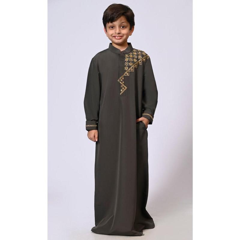 Crafted from the finest quality fabrics, our Boy's Thobe boasts a sophisticated design with a hidden placket, lending a sleek and streamlined appearance. The concealed button fastening adds a touch of refinement, ensuring a polished look for any occasion.