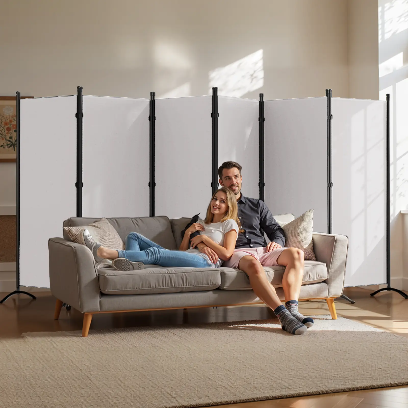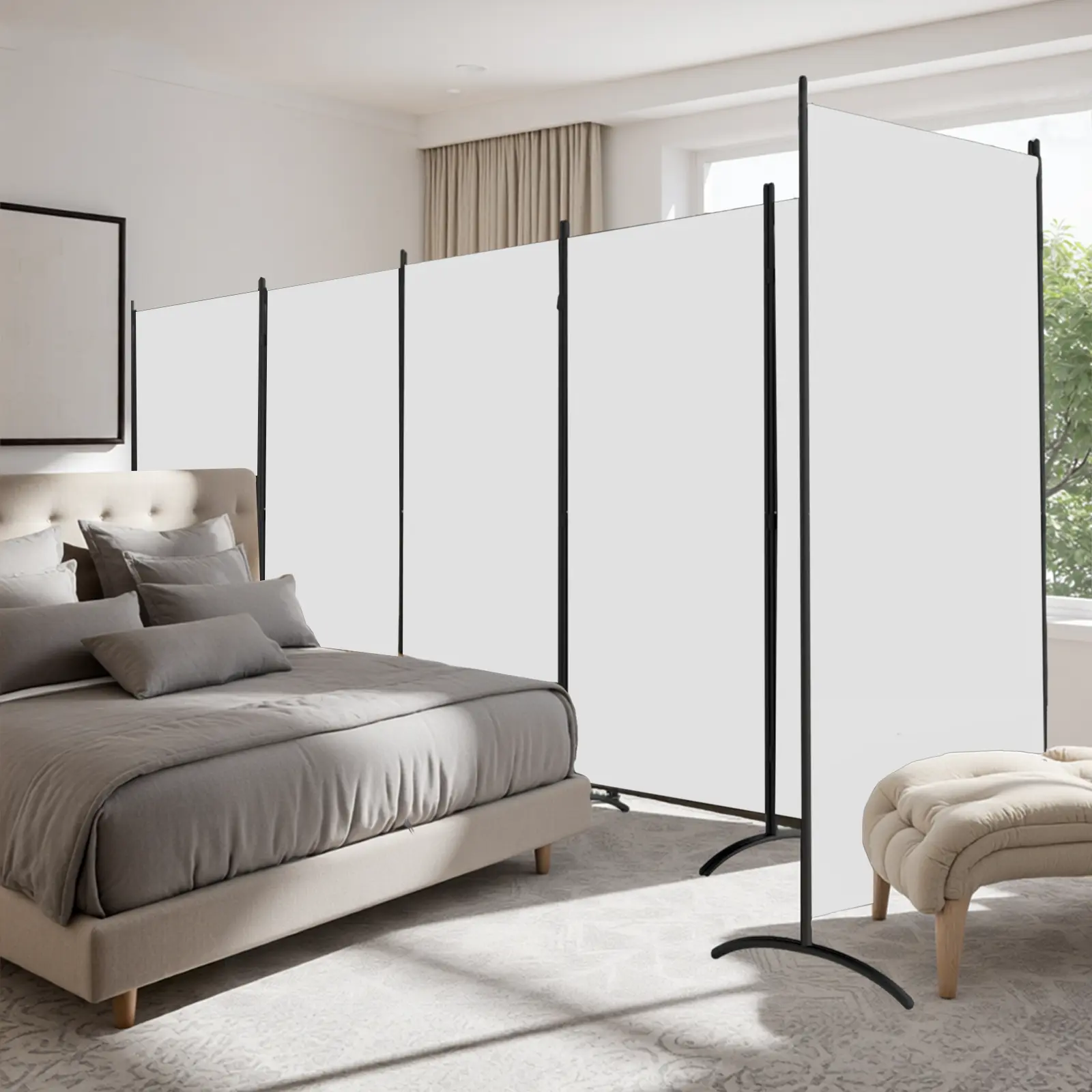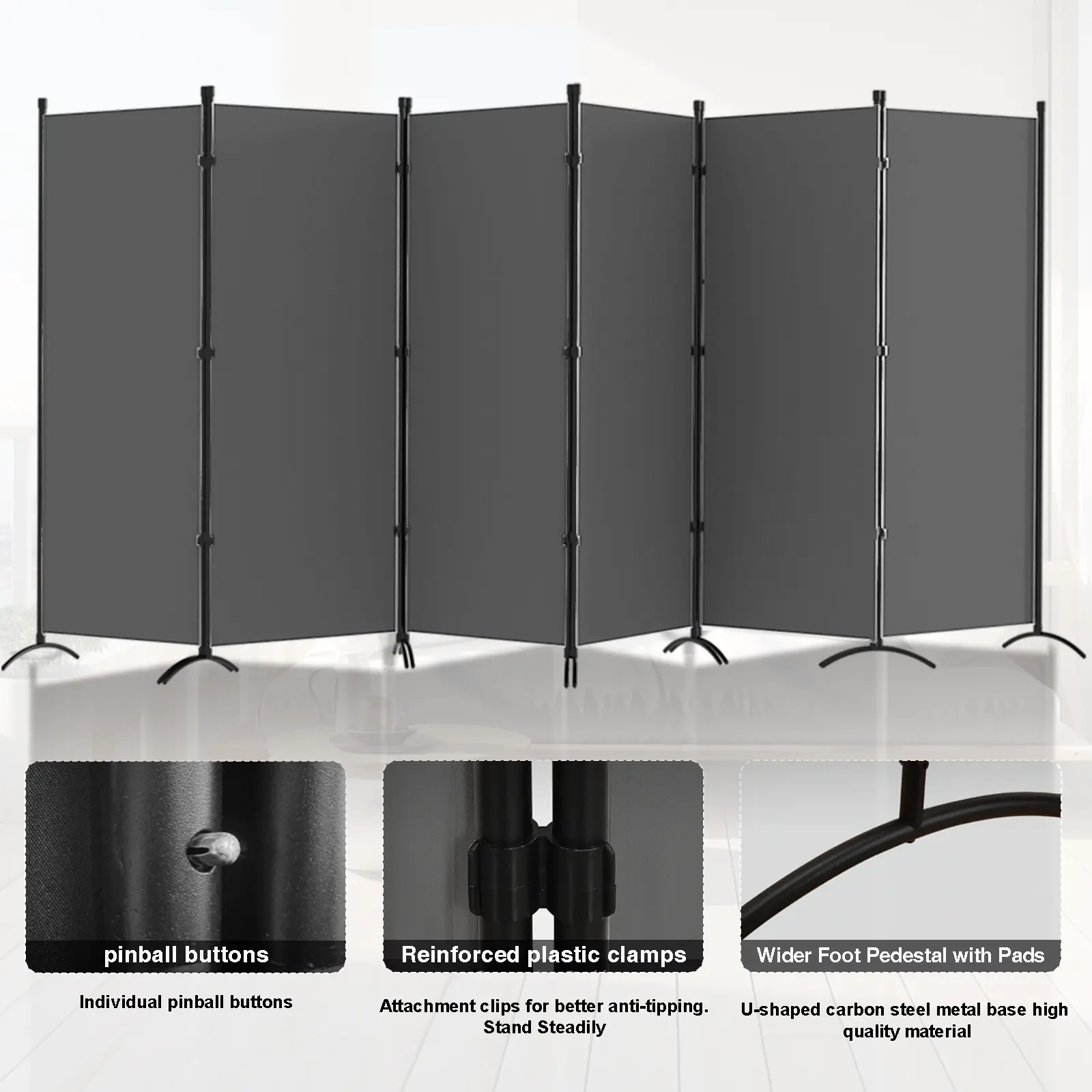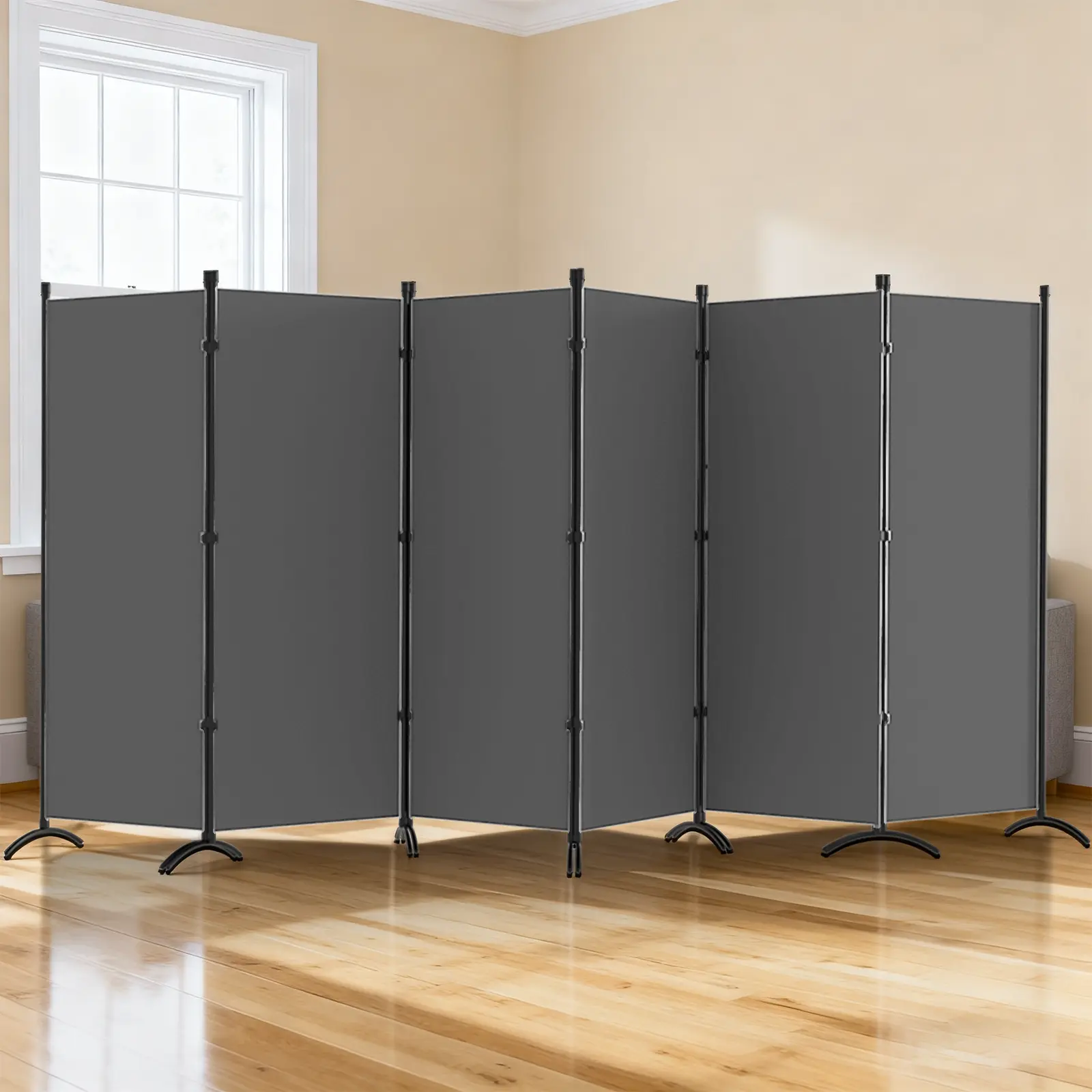 ·Freestanding & Folding Design: Each room divider panel is linked by double hinges, allowing you to freely adjust the angle of room divider, or use them to expand your room dividers into a temporary wall or temporary room!