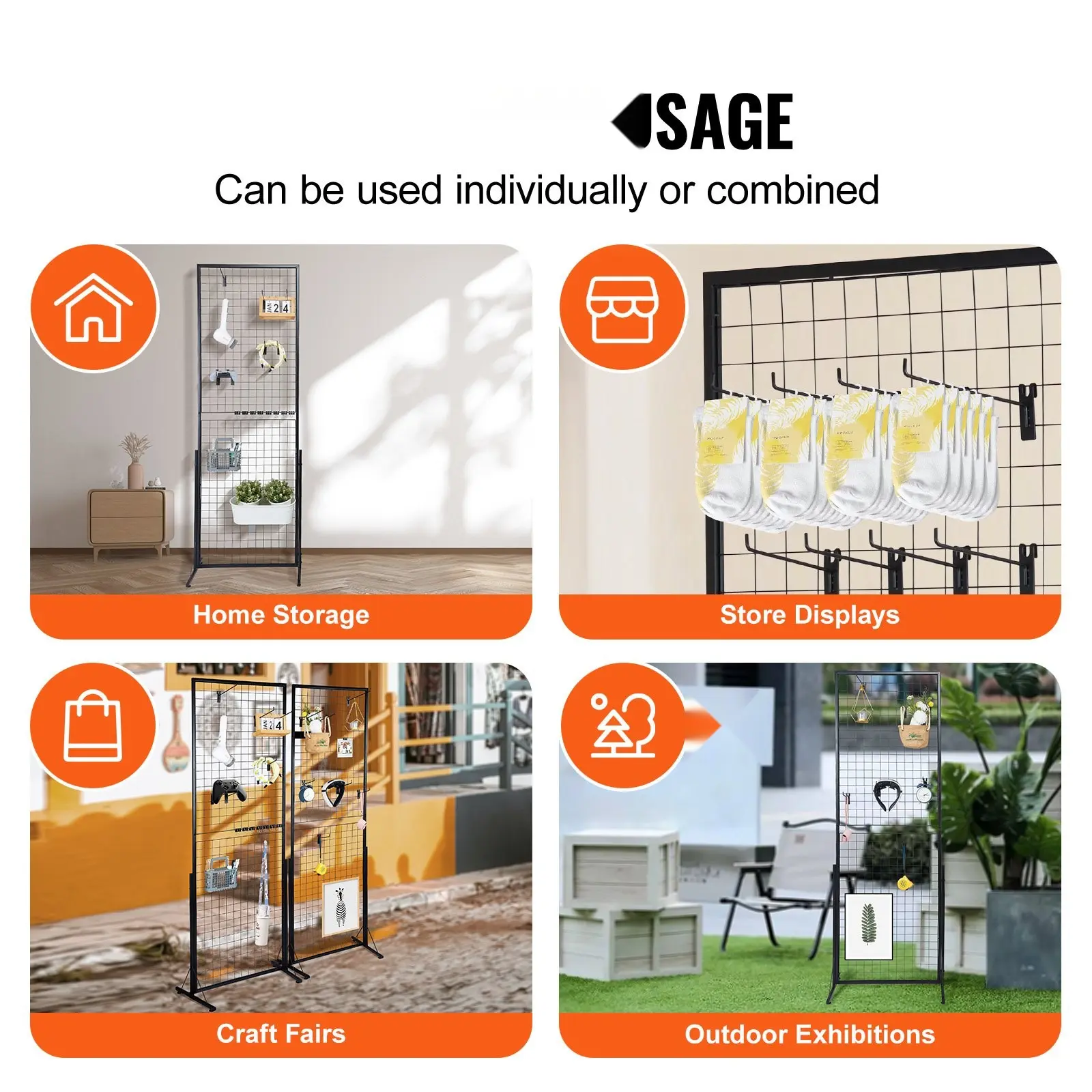 This gridwall panel tower boasts a weight capacity of up to 60 lbs, making it capable of holding various daily supplies or home decorations. Crafted with a dual-line design from premium metal wires, it features exceptional sturdiness and stability.