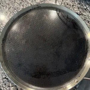 Purchased an entire set and added this into the mix. No issues with any other pots or pans. Seasoned this after each use. Never used on high heat. Noticed extensive staining along the rim and part of the pan face after a few uses. Has not happened with any of the other pots or pans. Reached out to customer service who did not address the issue. Feel that this pan was a waste of money.