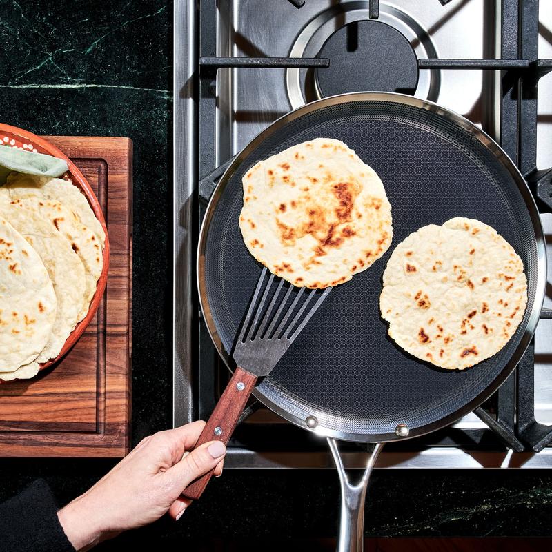 HexClad’s 12” griddle is the perfect size for 4 slices of bread at once! Even browning that is crisp and perfect. Meats sear with perfection! As a former All-Clad user, HexClad has won my heart and is the only pan you’ll find in my kitchen!