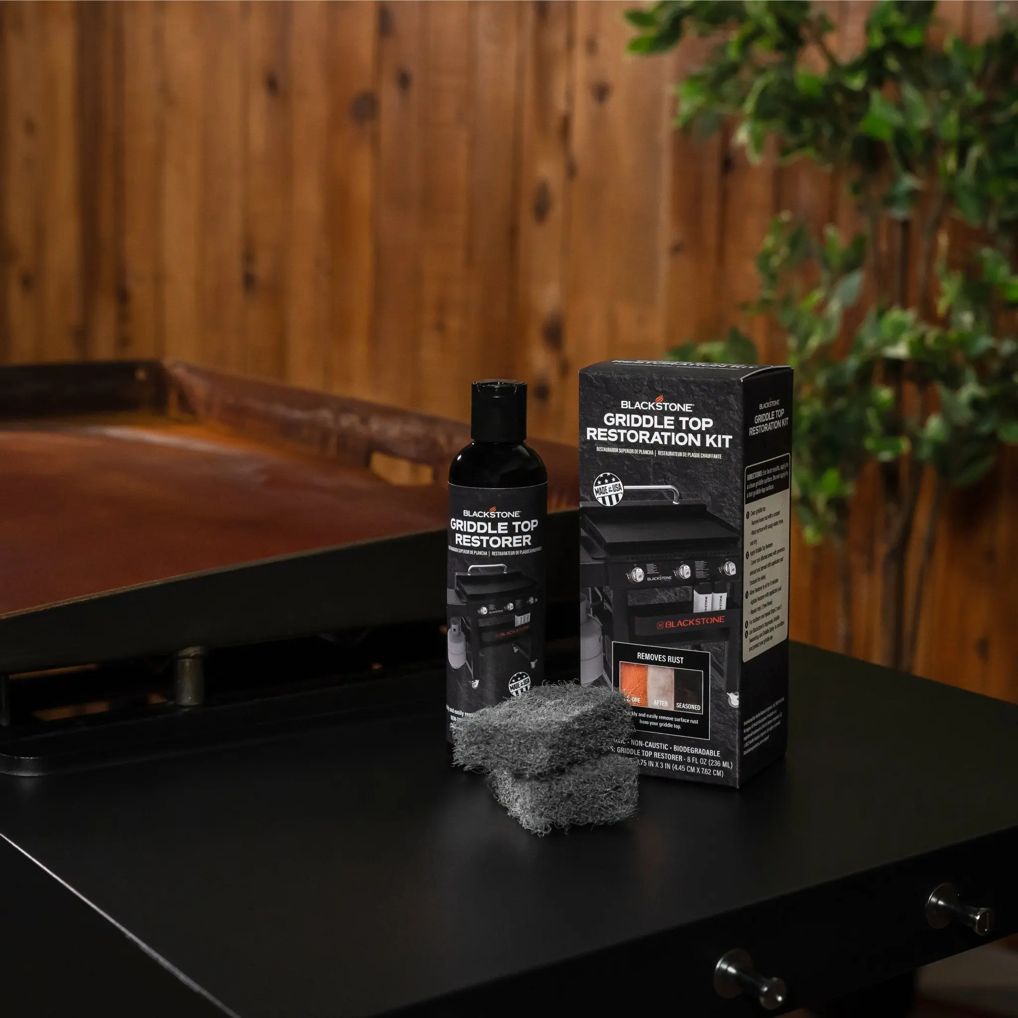 Keep your griddle top looking new and rust-free with the Blackstone Griddle Top Restorer. This kit is designed to effectively break up grease, making cleaning your griddle a breeze.