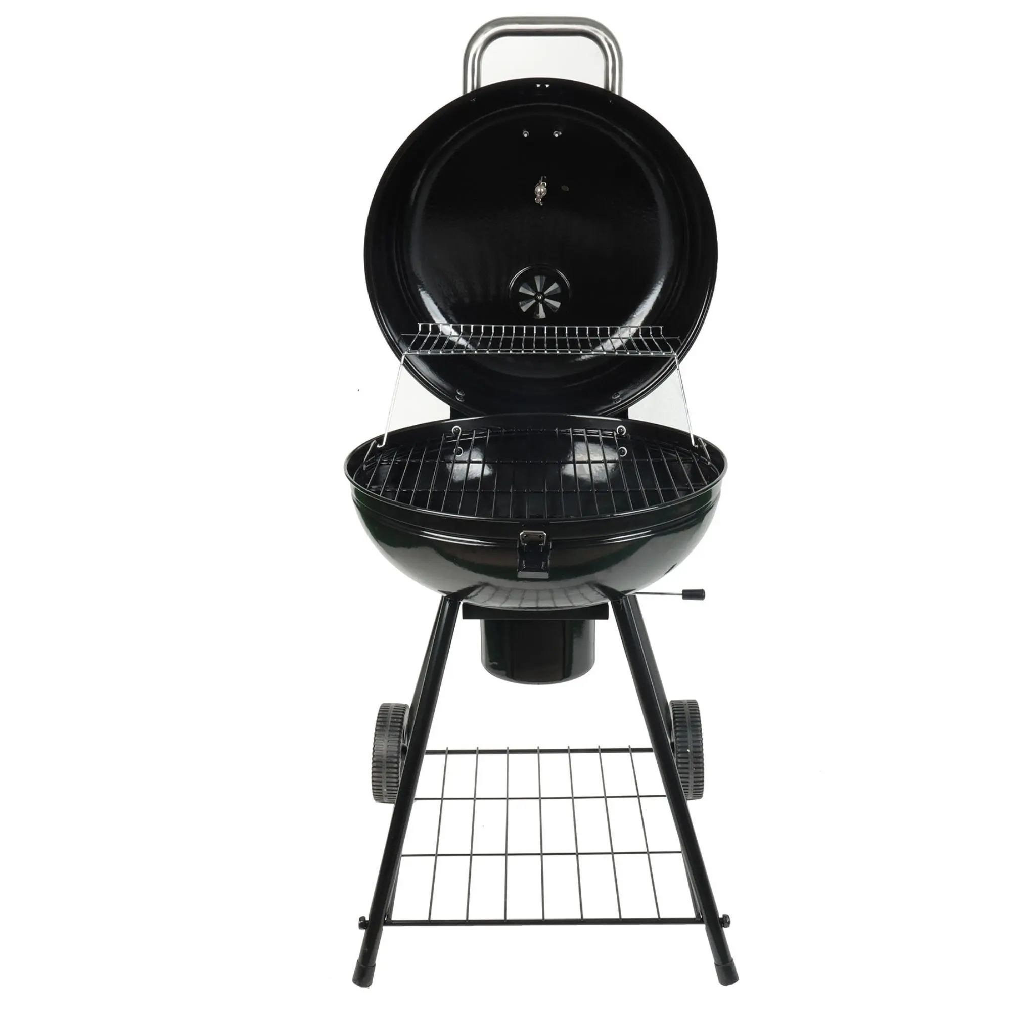 Get ready to elevate your grilling experience with the Grill Boss 22-Inch Kettle Charcoal Grill. Perfect for cooking multiple meats and veggies at once, this grill features a spacious cooking area, offering plenty of room for your favorite meals. The ample primary cooking surface is complemented by a convenient warming rack, allowing you to prepare several items with ease. Whether you're hosting a BBQ or grilling for the family, this kettle grill provides the perfect solution for all your outdoor cooking needs.The built-in temperature gauge helps you maintain ideal cooking temperatures, ensuring perfectly cooked food every time. Adjustable air vents give you the ability to control airflow for precise heat levels, making it easier to grill your meats to perfection. The durable porcelain-coated steel-hinged lid locks in heat while adding to the grill's sleek, professional look.Designed for convenience, the Grill Boss Kettle Charcoal Grill is equipped with a bottom storage shelf, offering extra space for your grilling accessories or tools. The slide-in ash catcher simplifies cleanup, so you can spend more time enjoying your meal and less time on maintenance.Transporting this grill is a breeze, thanks to its sturdy wheels that make it easy to move from one location to another. Whether you're taking it to a tailgate, camping trip, or backyard BBQ, this portable Charcoal Kettle Grill from Grill Boss ensures you're always ready to fire up the grill wherever you go.