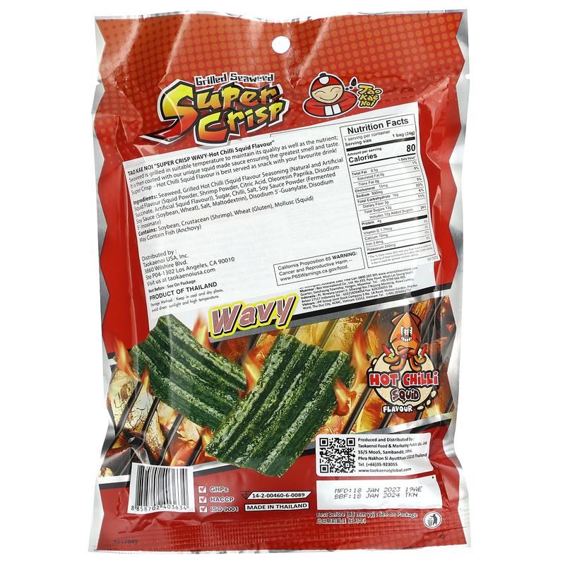 5. Tao Kae Noi Grilled Seaweed Super Crisp , Wavy, Hot Chilli Squid, 0.84 oz (24 g)