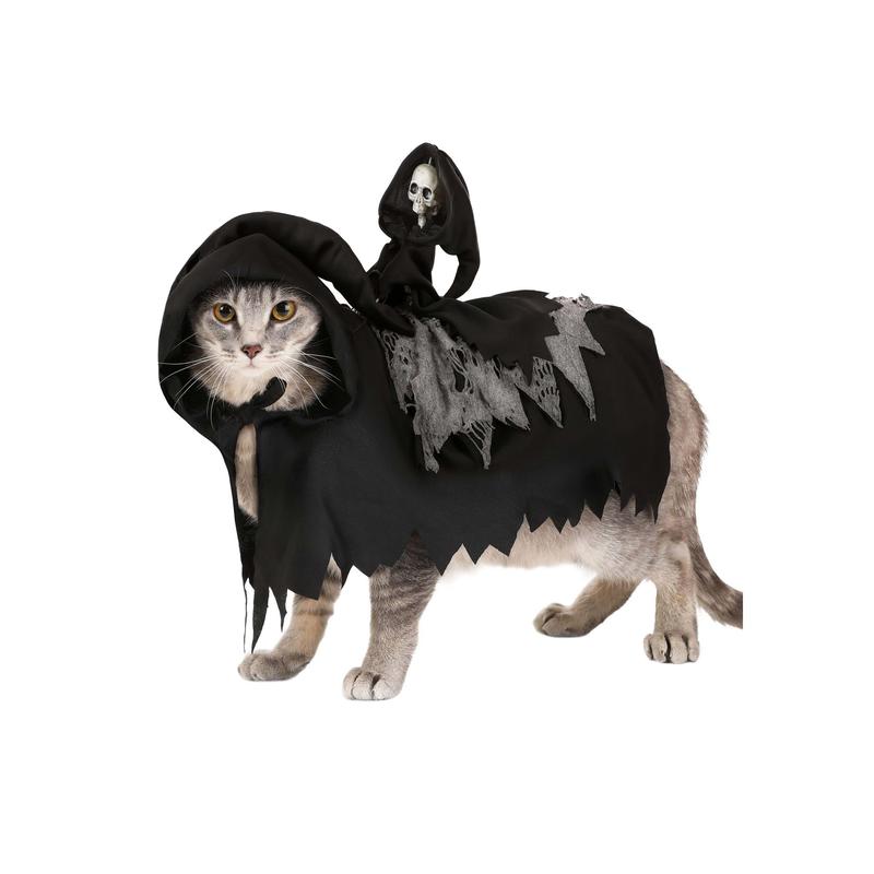 · Small plastic skeleton with its own cloak is attached to ride on dog's back