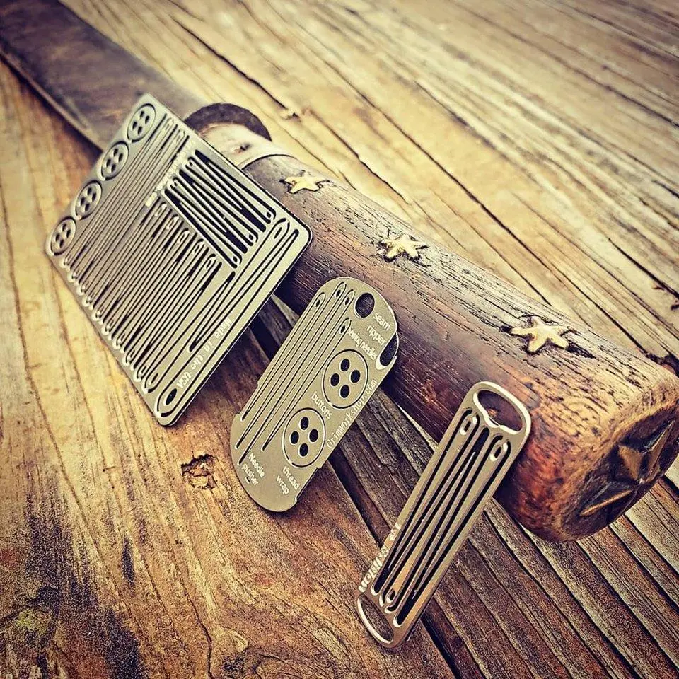 The Grim Workshop Sewing Needle Micro Tool is a compact and essential addition to your edc sewing kit. This mini sewing kit is designed to provide you with the ability to perform essential sewing repairs in the field, this mini sewing kit is as small as a large paperclip, measuring just 1mm thick, yet it's packed with features that ensure you'll always be prepared.