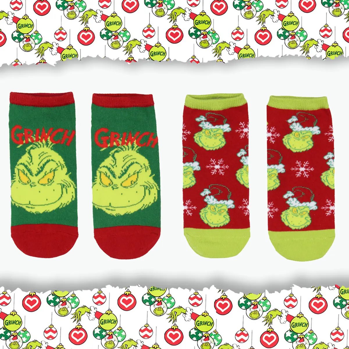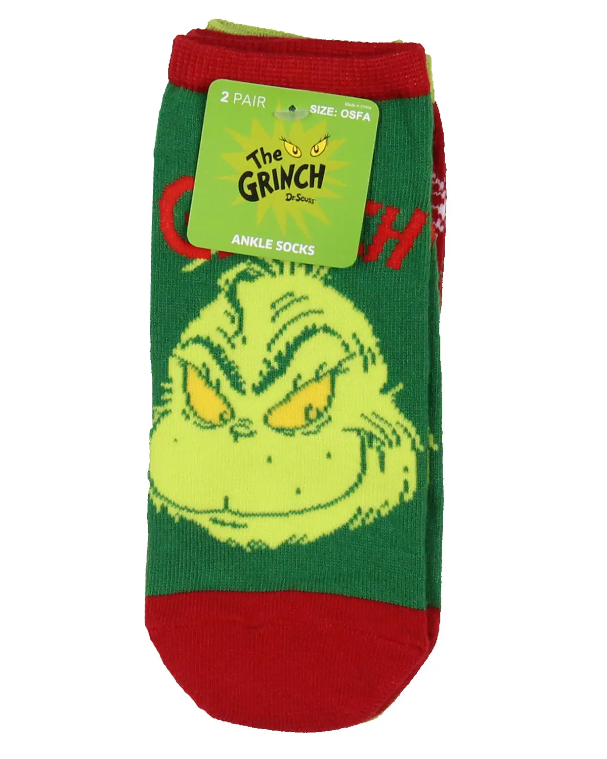 Dr. Seuss GRINCH Socks Adult Christmas Holiday No-Show Ankle Socks 2 Pairs For Women or Men