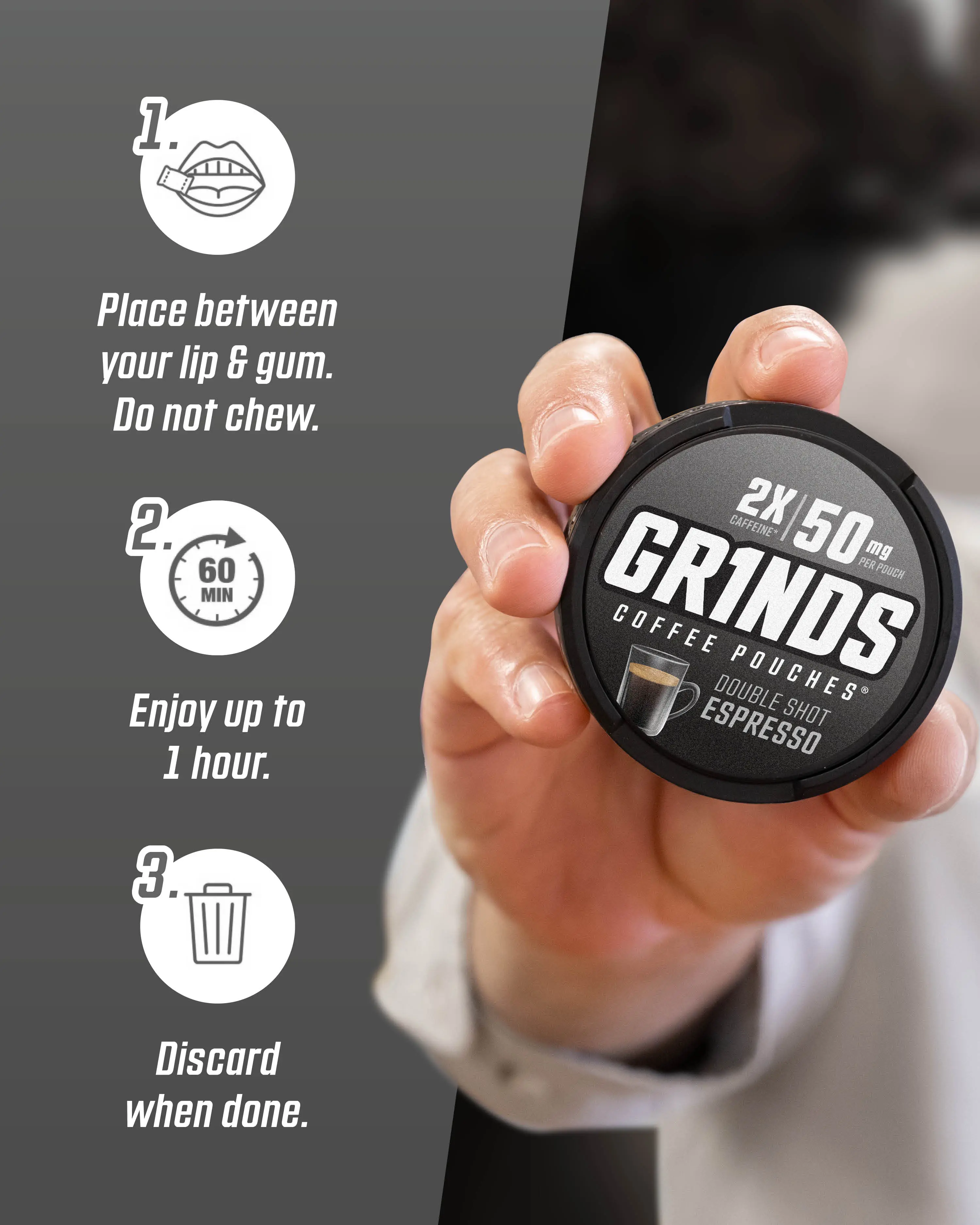 ·Double Shot Espresso pouches contain 50mg of caffeine