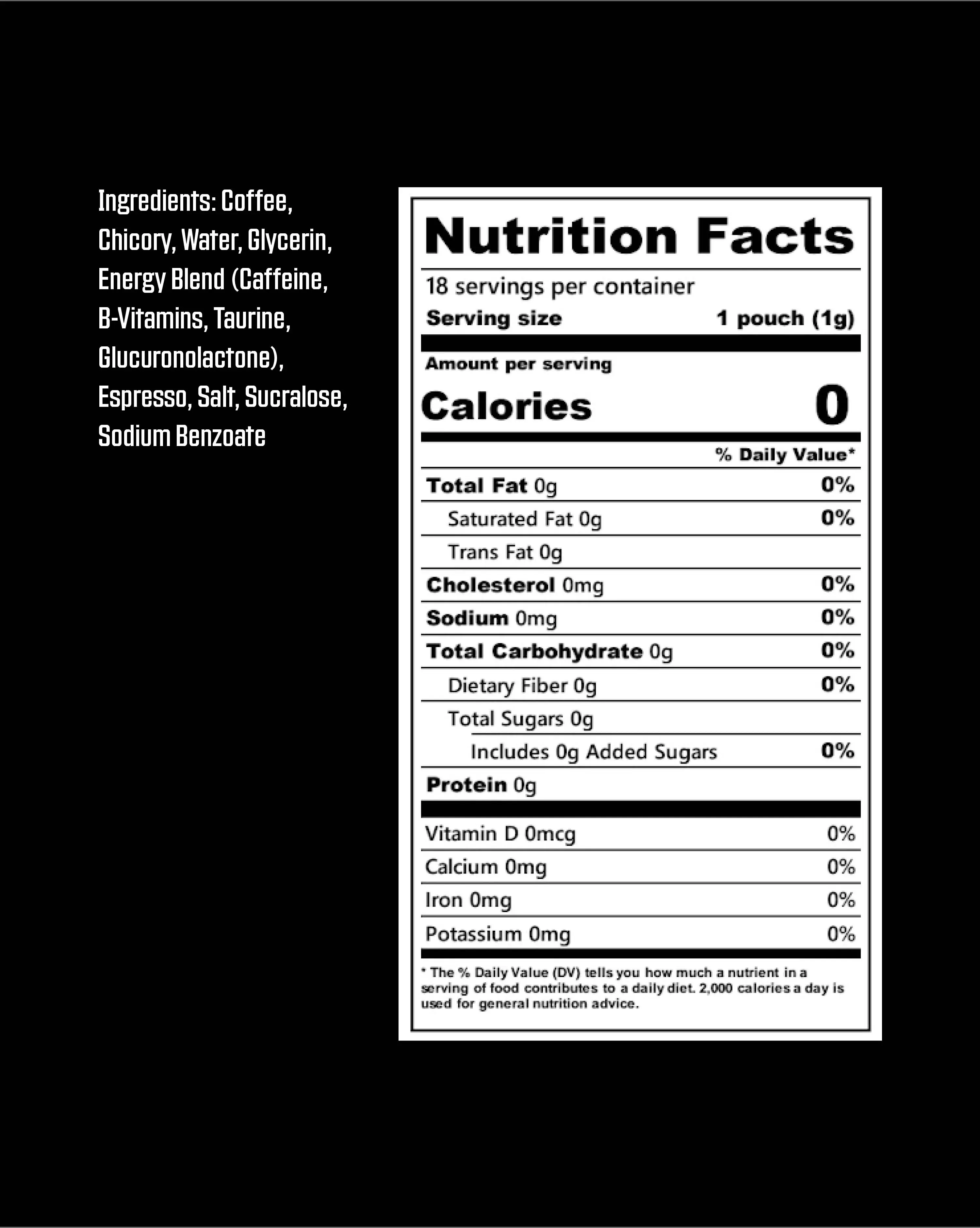 Feel the sharp jolt of energy with these smooth tasting pouches. Formulated to get you off the ground and running, this robust espresso flavor will be sure to get you through the day!