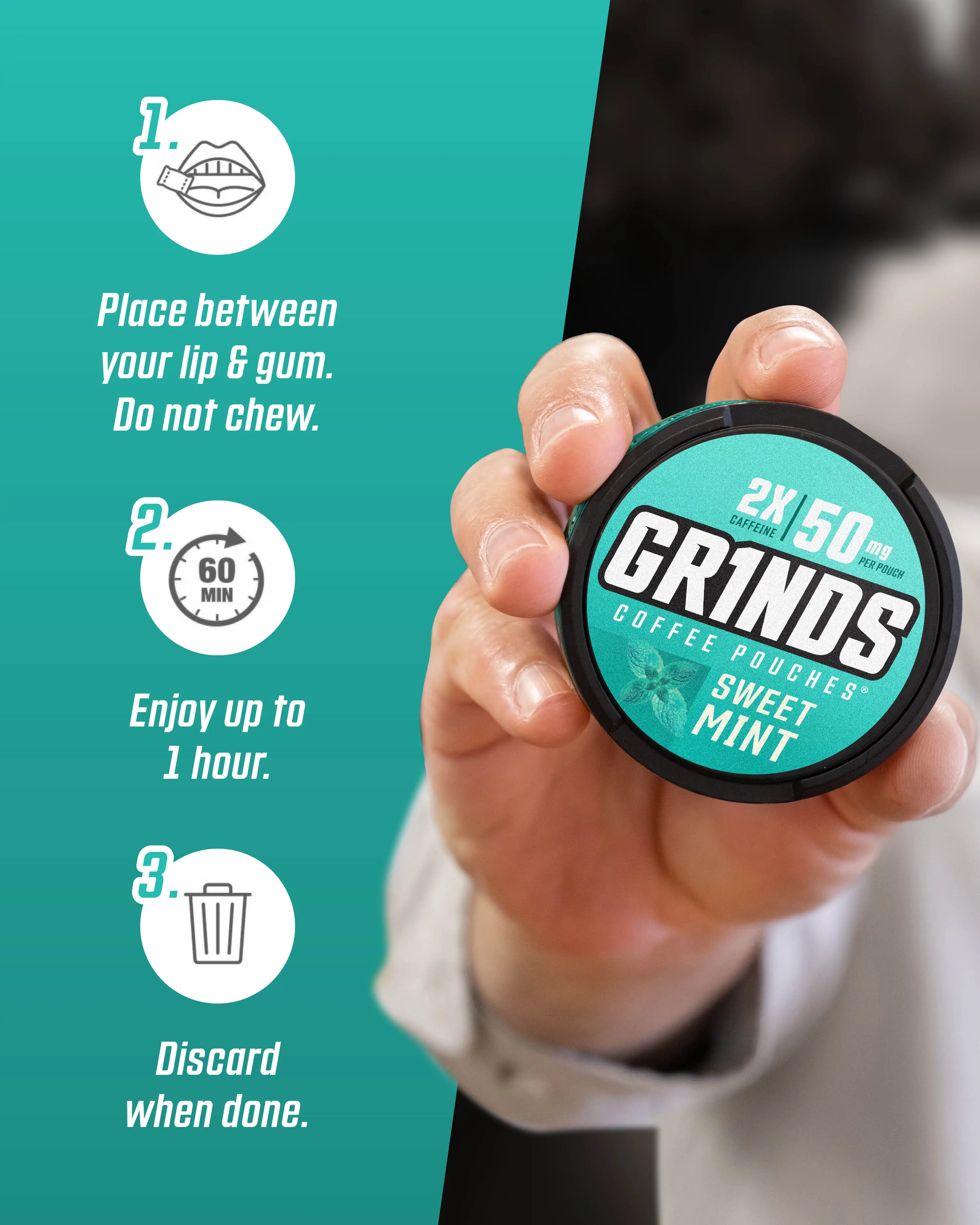 I recently quite chewing and the sweet mint hits perfectly on flavor. I’m able to space out the pouches throughout the day with the caffeine boost in each one.