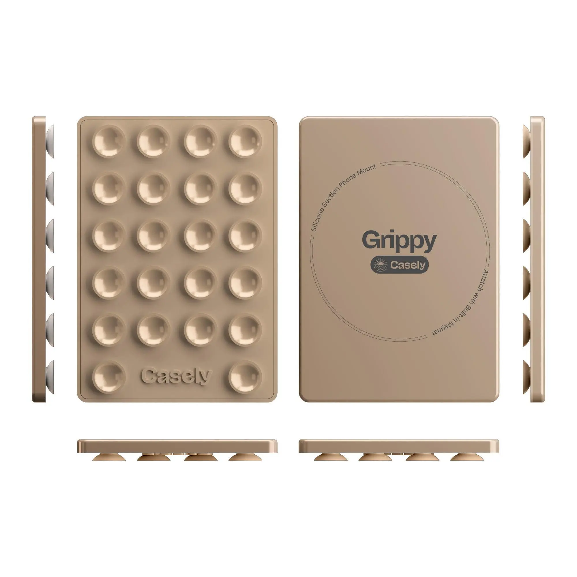 Introducing Grippy, the Taupe Silicone Suction Phone Mount with MagSafe compatibility, perfect for hands-free convenience on the go.