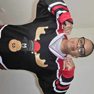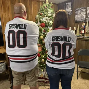This Griswold #00 long sleeve jersey is ideal for movie buffs and sports fans. Professionally stitched letters and numbers ensure an authentic look. It's perfect for costumes, fan events, or everyday wear. The jersey features a festive moose design with a Santa hat, adding a fun touch. 🎄