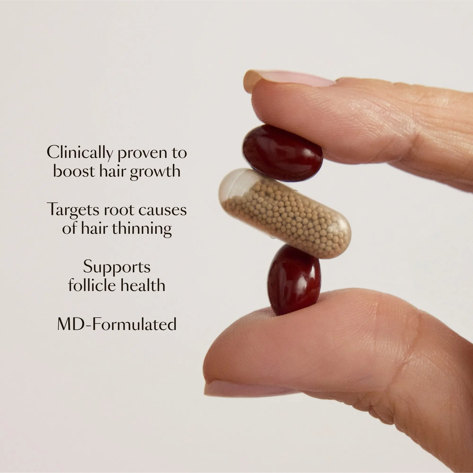 Formulated by MDs, this vegan, dual-pill system boosts visible hair density and strength while promoting scalp health and long-term vitality.