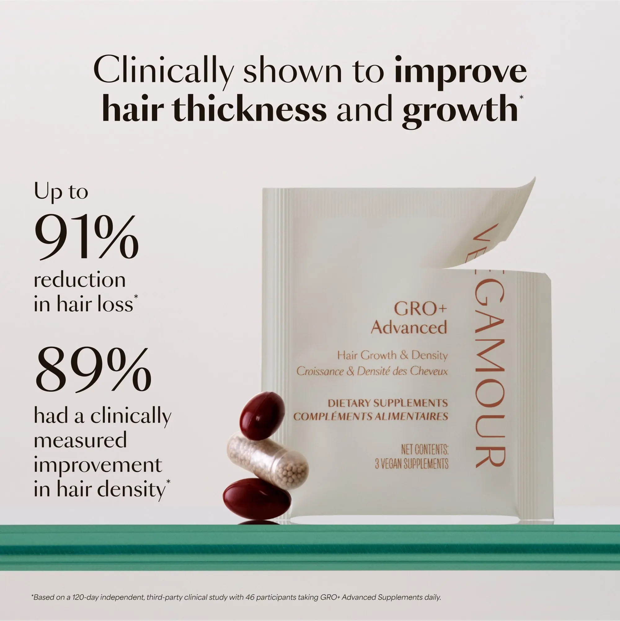 *Based on a 120-day independent, third-party clinical study with 46 participants taking GRO+ Advanced Supplements daily
