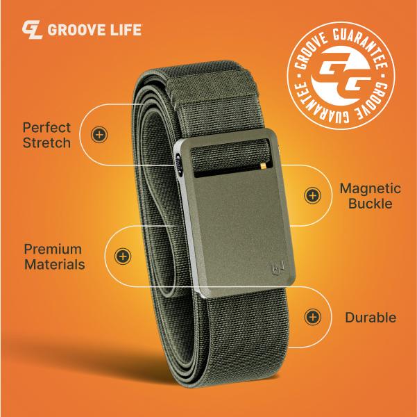 Best belt I have found for work. Comfortable, flexible and non marring. Buckle is composite so it will not scratch or damage things it may come into contact with. Its also a manly green and beautiful