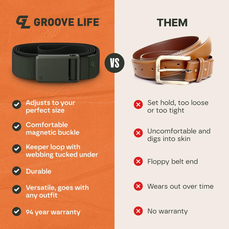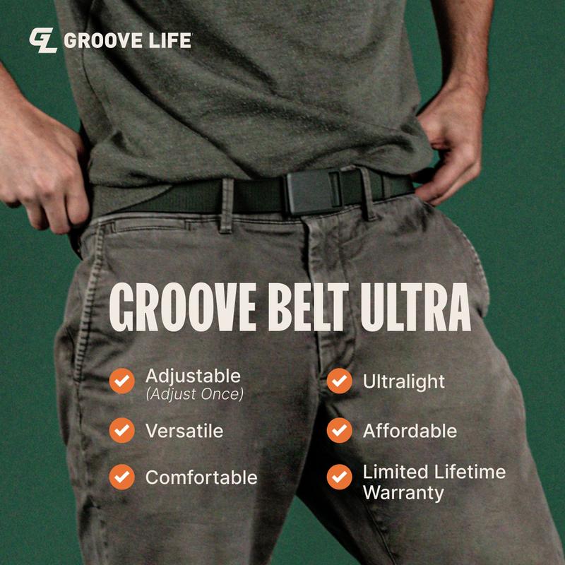Not sure why groove named the belt Ultra...it feels like some poly carbonate material with a narrower width. I prefer the metallic click sound of the original heavier metal buckle and the wider belt profile because it holds inside waist band carry much better than the ultra cheap skinny belt. I wish I didnt buy the ultra. Just stay with the original design that made groove a good belt.