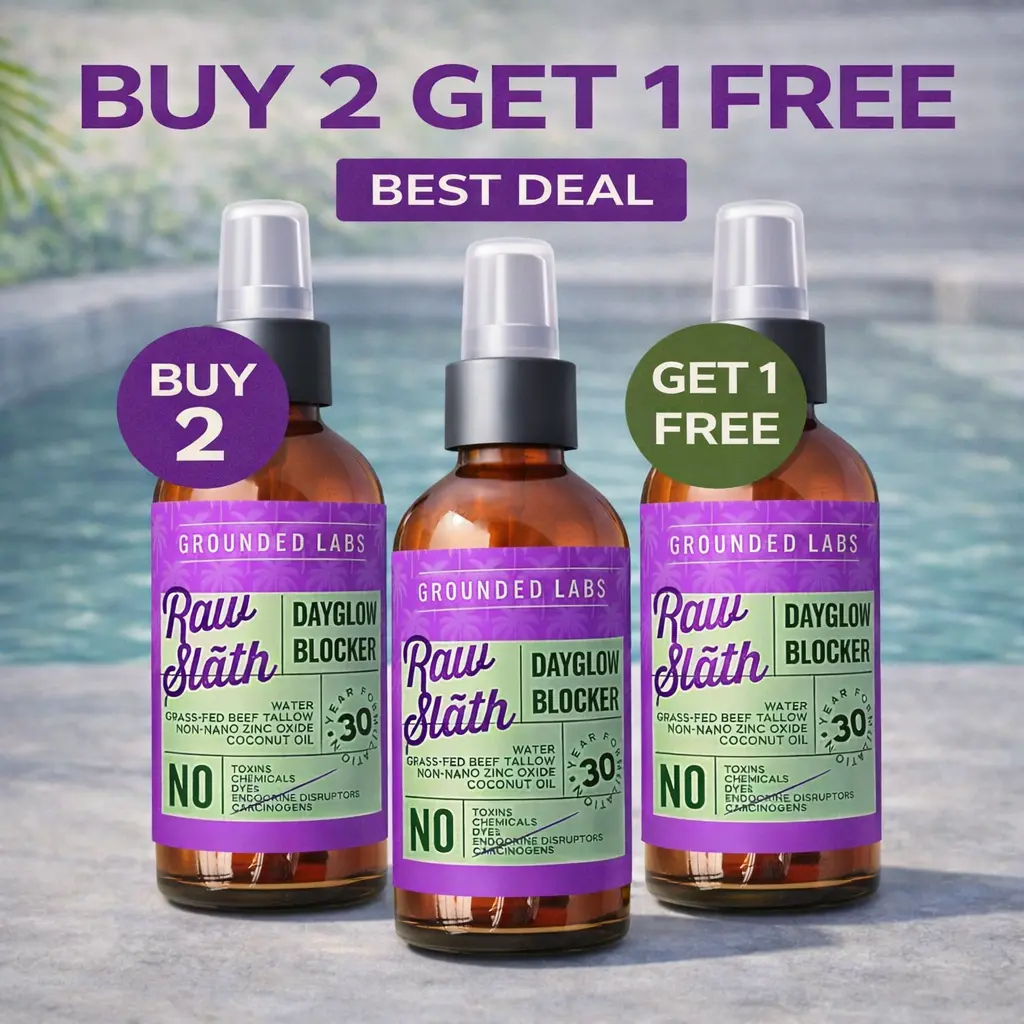 Grounded Labs All-Natural Sunscreen (3-PACK) – Chemical-Free, Grass-Fed Tallow & Non-Nano Zinc Oxide Sunblock (5.5 fl oz Spray)