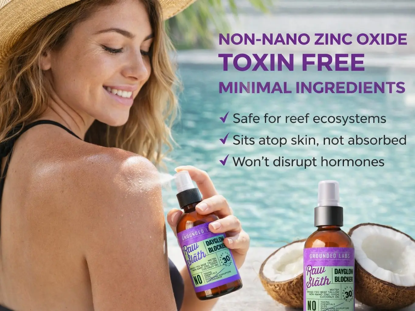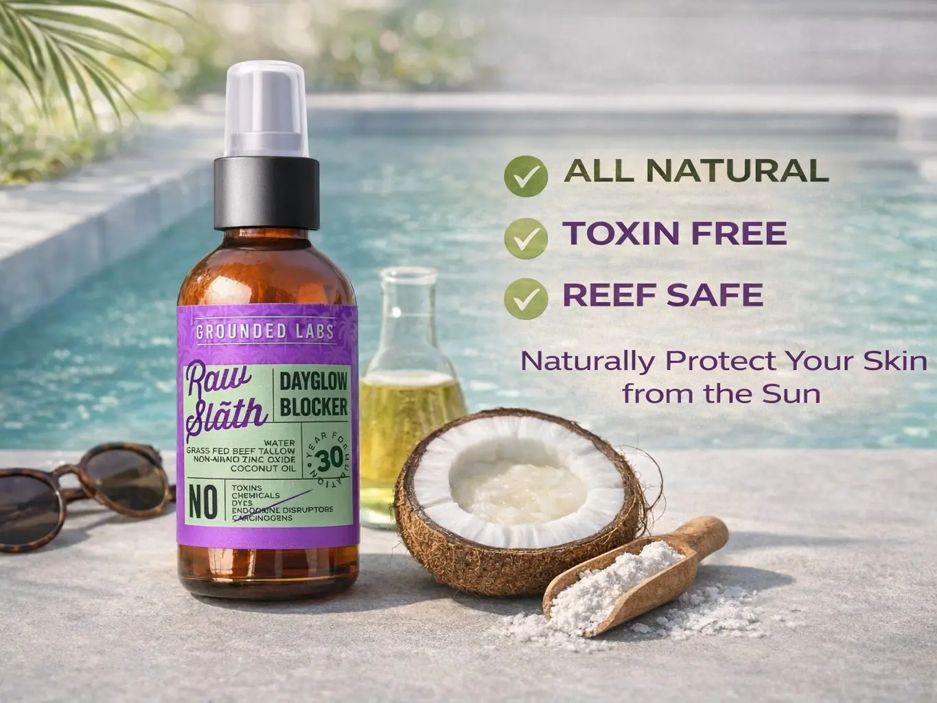Protect your skin the natural way with Grounded Labs All-Natural Sunscreen, formulated with grass-fed beef tallow, coconut oil, and non-nano zinc oxide for safe, effective sun protection. Unlike conventional sunscreens loaded with harsh chemicals, toxins, hormone disruptors, and carcinogens, our clean, chemical-free formula nourishes your skin while shielding it from harmful UV rays.