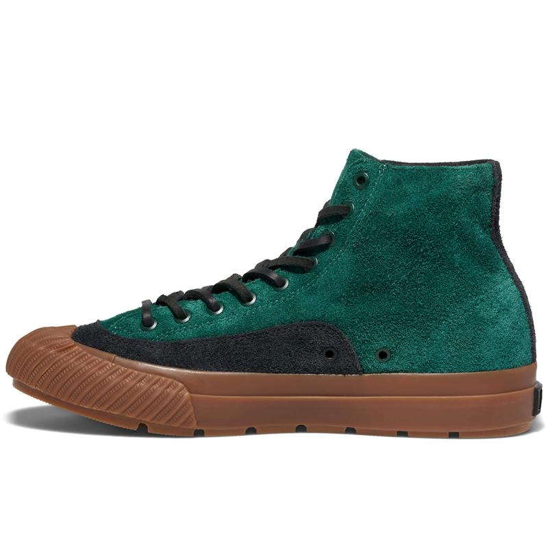 The Field/Spec High-Top Deep Green/Gum is a nod to military-grade function, refined for today. A luxe suede upper with reinforced black suede overlays adds texture and protection, while leather laces and metal eyelets bring a tactical edge. Underfoot, our signature Posture Foundation Insole distributes weight evenly, providing the cushioning and stability you need to stay grounded. Finished with a gum rubber outsole and ribbed toe wrap, this sneaker is built for modern exploration.