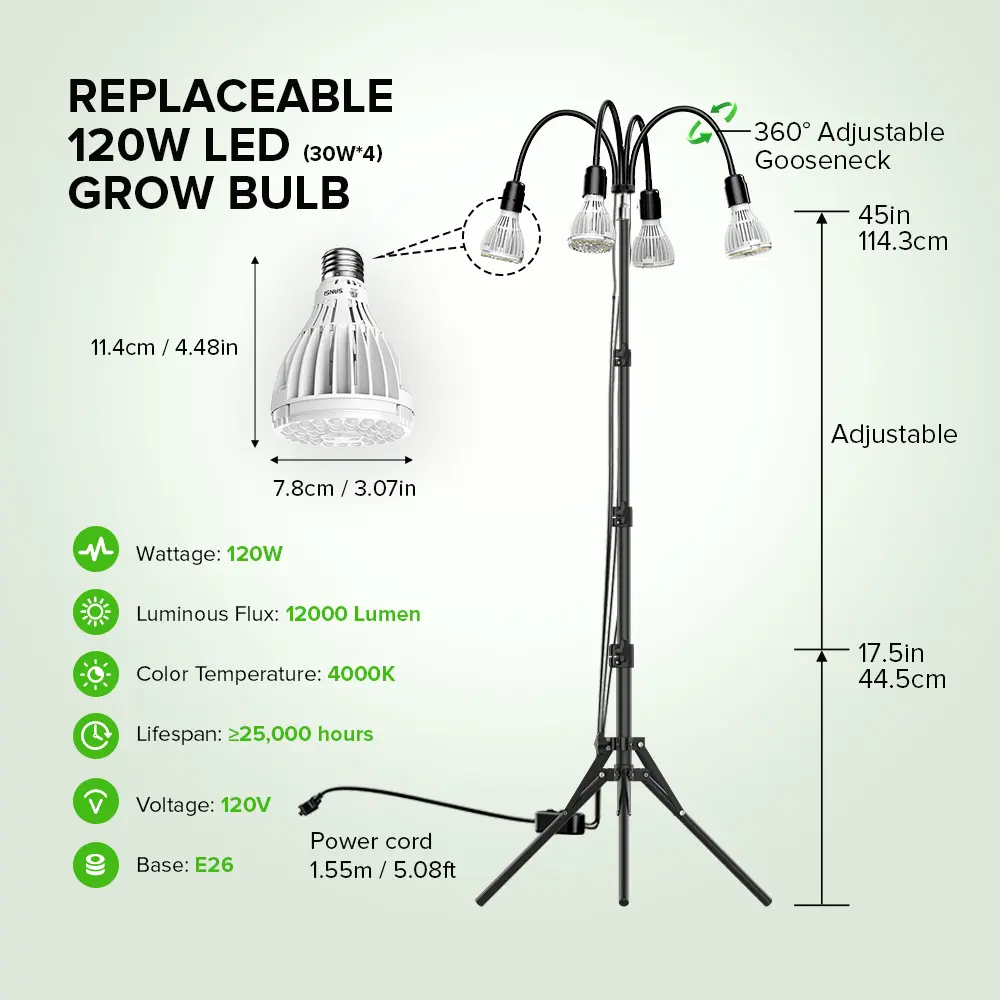 ·ADJUSTABLE HEIGHT FLOOR GROW LIGHT: SANSI grow light is able to adapt to most indoor plants, with a height adjustment range from 21 to 55 inches, whether it's a potted plant or a tall plant, you can easily position the light according to your plant's needs