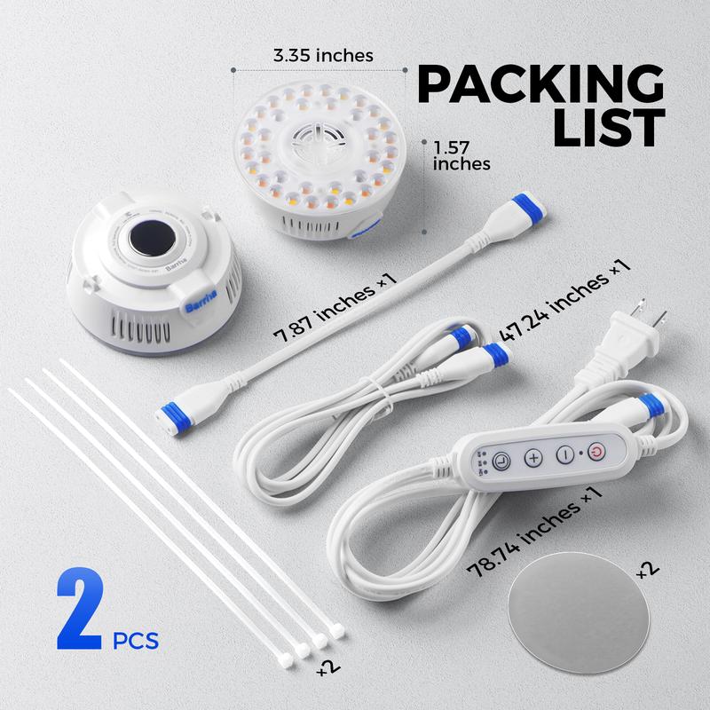 ·Red Wavelength 660nm with CRI 89: The Barrina Puck Grow Light features a 660nm red wavelength with a CRI of 89, delivering targeted spectrum efficiency for optimal photosynthesis. Ideal for microgreen, fruiting, foliage plants and flowering species etc., this grow light supports healthy growth from seedlings to bloom, ensuring your indoor garden flourishes