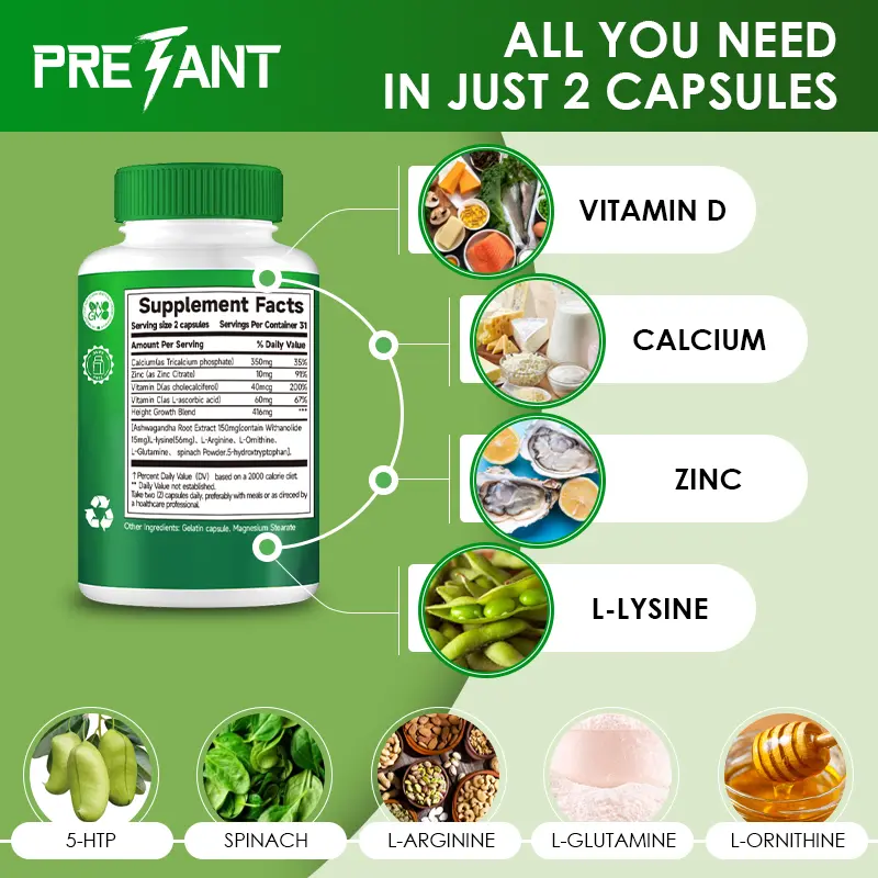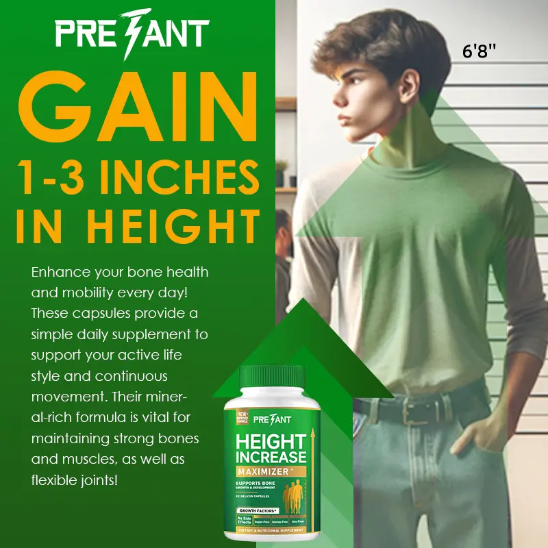 Reach Your Dream Height – Our formula with Calcium and Vitamin D promotes natural bone growth. Vitamin D is essential for strong bones and muscle, aiding calcium absorption, while Calcium accelerates bone growth. Just 1-2 capsules daily can boost height and strengthen bones.