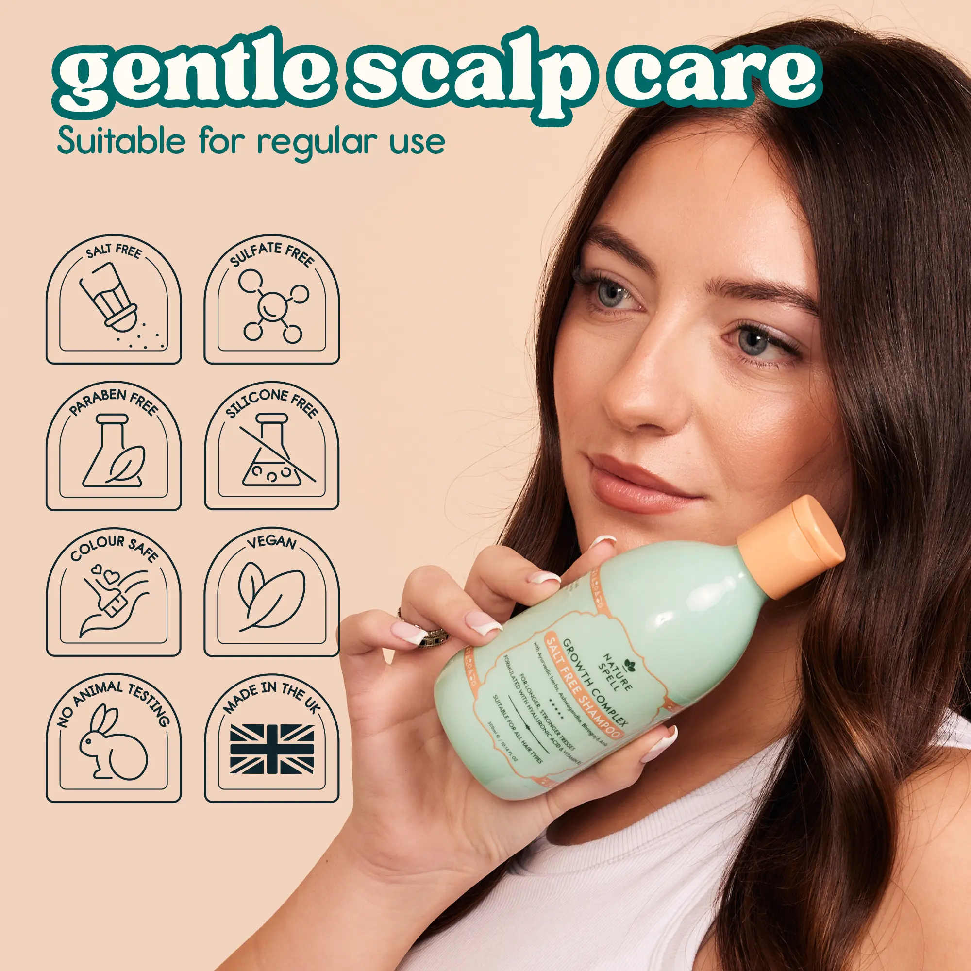 Revitalize and refresh your locks with Nature Spell's Growth Complex Shampoo. A masterful fusion of time-honored Ayurvedic herbs from the heart of India and modern hair-care wisdom, this shampoo brings together the best of both worlds. Every wash not only cleanses but also nourishes, paves the way for longer, lusher hair, and reinforces each strand's intrinsic strength.