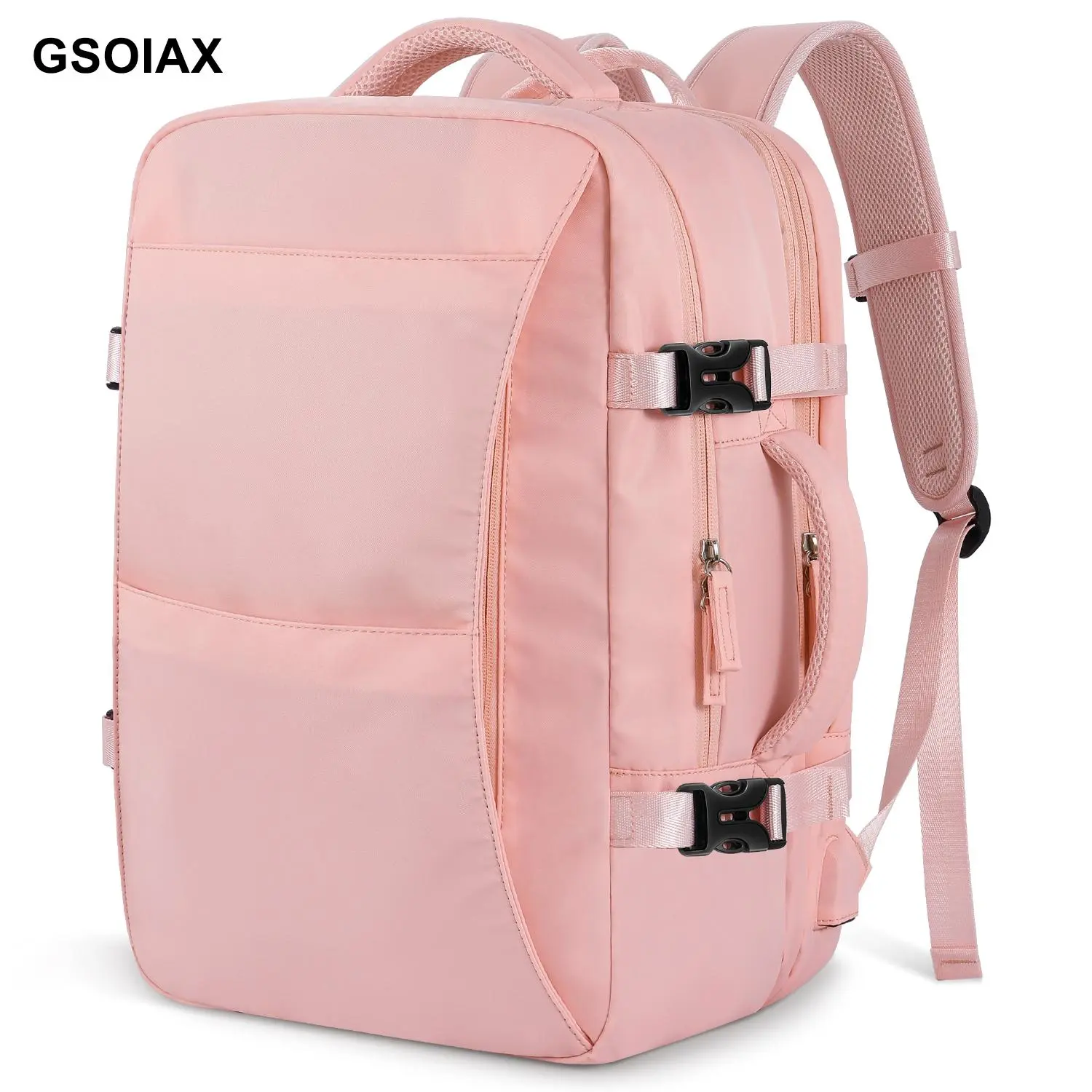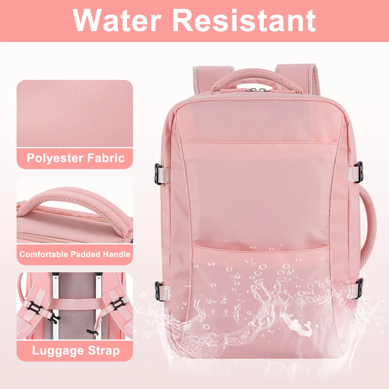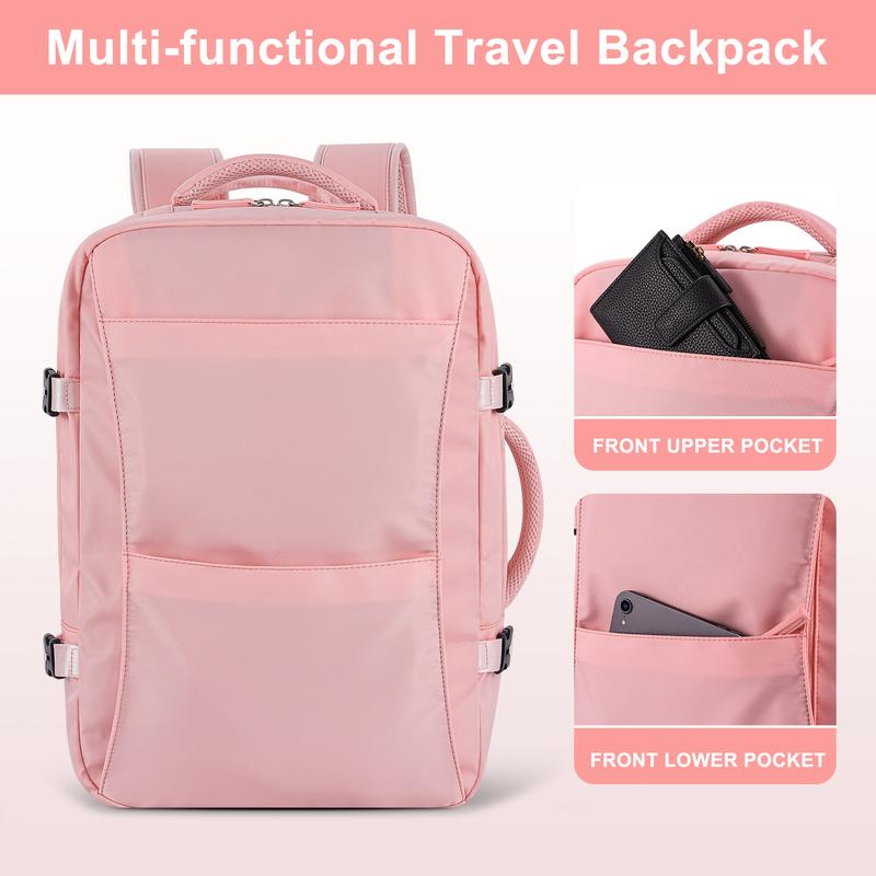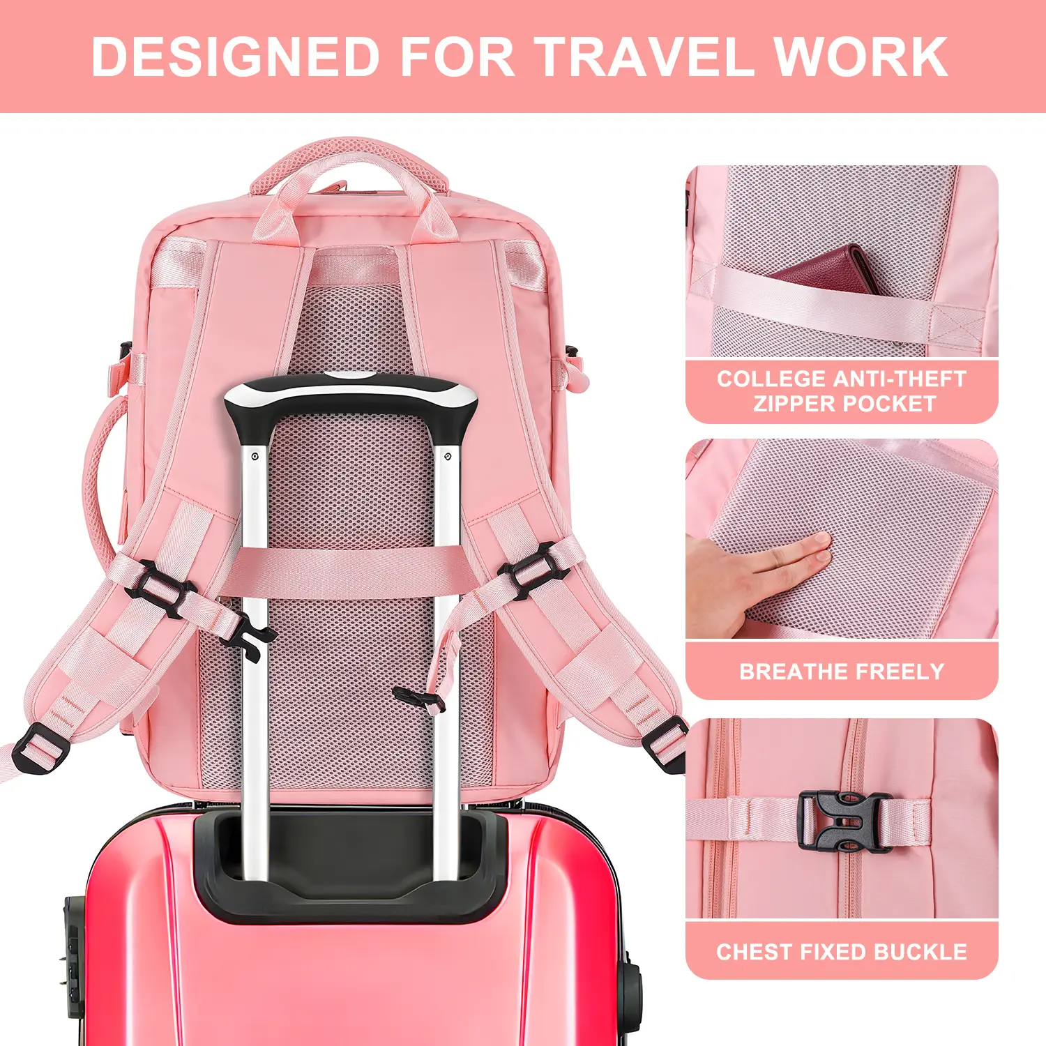 Ergonomic breathable back panel with thick, ventilated multi-layer padding helps relieve back pressure. Adjustable breathable shoulder straps and chest strap reduce shoulder burden. The rear luggage strap allows the backpack to be fixed on the suitcase handle for easy carrying.