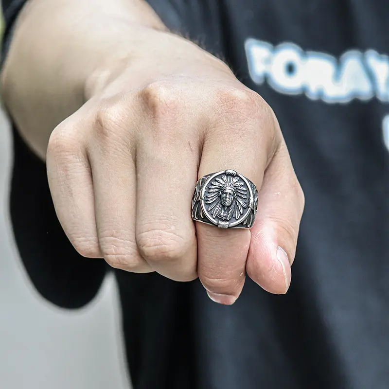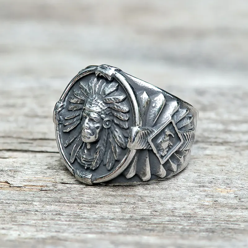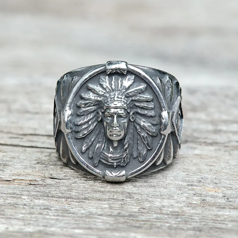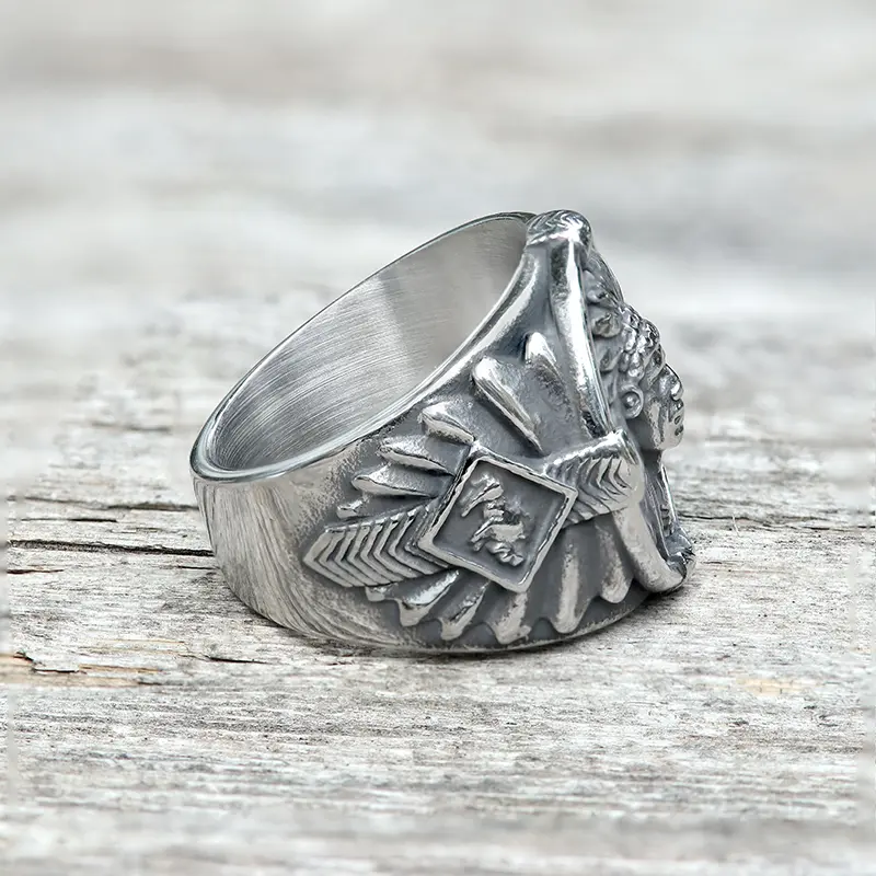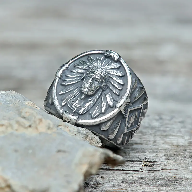 ¡Experience the rich cultural heritage with our Indian Chief Stainless Steel Ring. The intricate design of the Indian Chief with headdress is crafted with precision and attention to detail. Made with high-quality stainless steel, this ring is built to last and withstand everyday wear. The ring is a perfect accessory to add to your collection or gift to someone who loves Indian heritage. Order now and embrace the beauty of Indian culture!