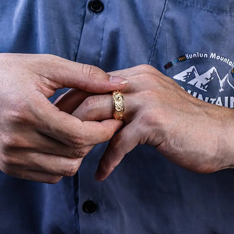 ·The beauty of the night sky is brought to life in this exquisite stainless steel spinning ring. Crafted according to high-quality stainless steel, this ring incorporates a moon, star and sun design on the rotatable band, perfect for those who love the stars or are looking for something unique and ornate. The size is about 8 mm high. The weight is about 8 g.