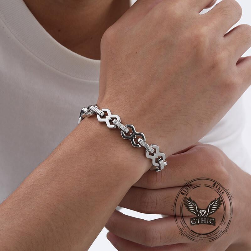 ·Bold Patchwork Design – This punk-inspired bracelet features a unique patchwork of stainless steel elements, creating a striking statement piece that adds edgy style to any outfit, for both men and women.