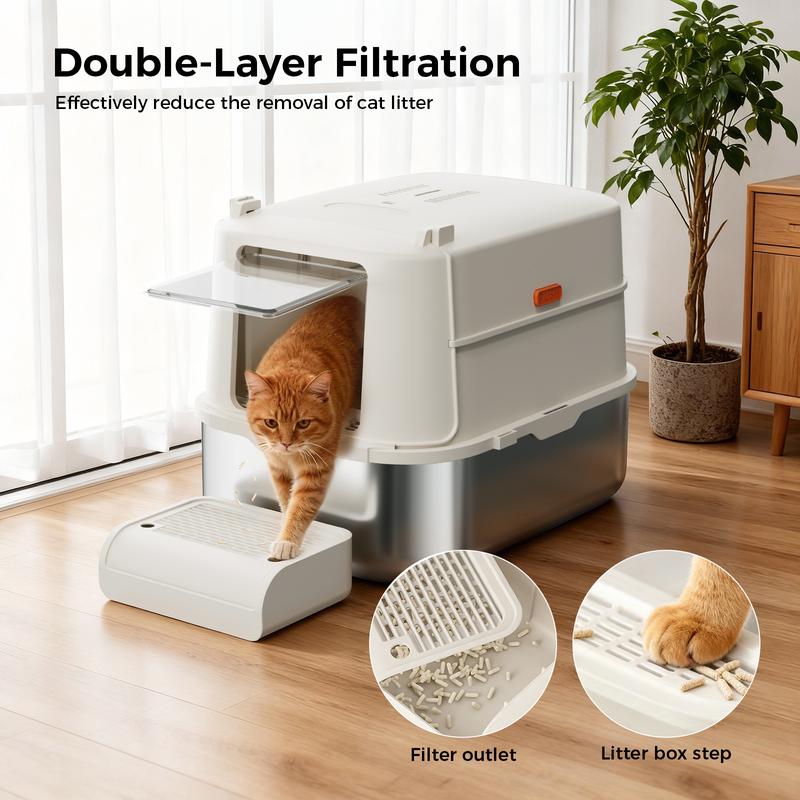 🎉【2026 New Year Sale】 GTPLAYER Extra Large Stainless Steel Cat Litter Box