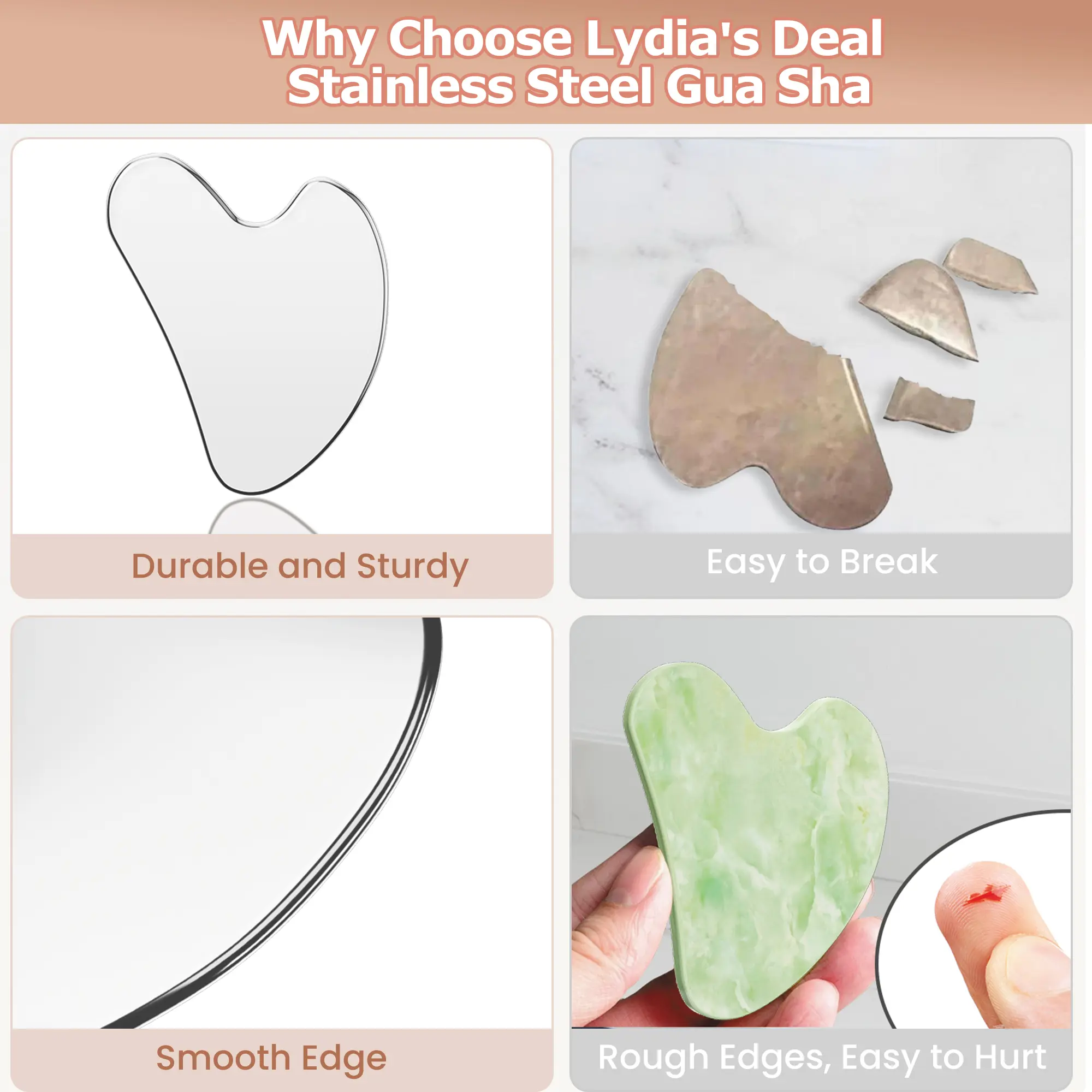 ·Upgrade Gua Sha Tool: This gua sha tool is made of premuim quality stainless steel material, steady and reduce friction, polished to the mirror surface, smooth and easy to clean. Normally you can even use it forever