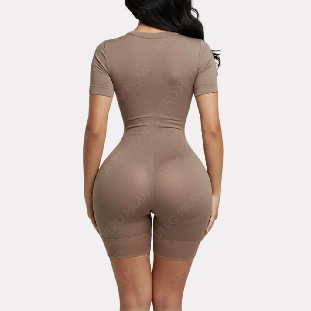 ✅ Waist, abdomen, and back control ✅ Prevents chafing between the thighs ✅ Lifts and centers the bust (wear it with or without a bra!) ✅ Adjustable straps for greater comfort ✅ Intimate opening for ease of use ✅ Short style – perfect for everyday wear