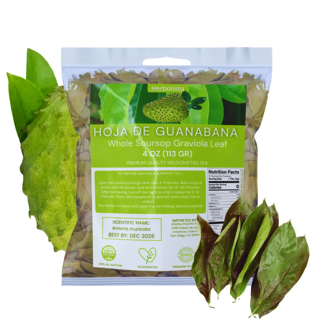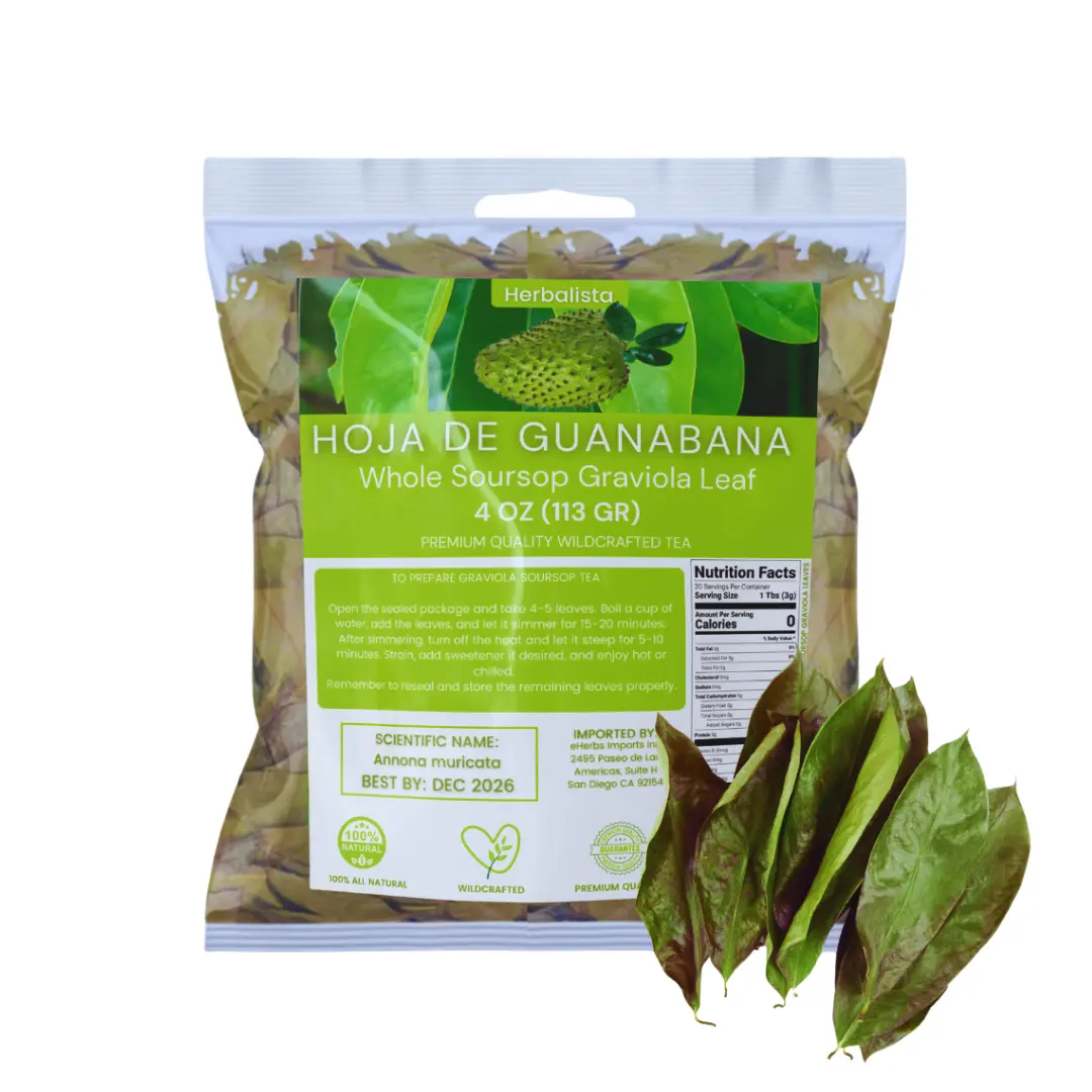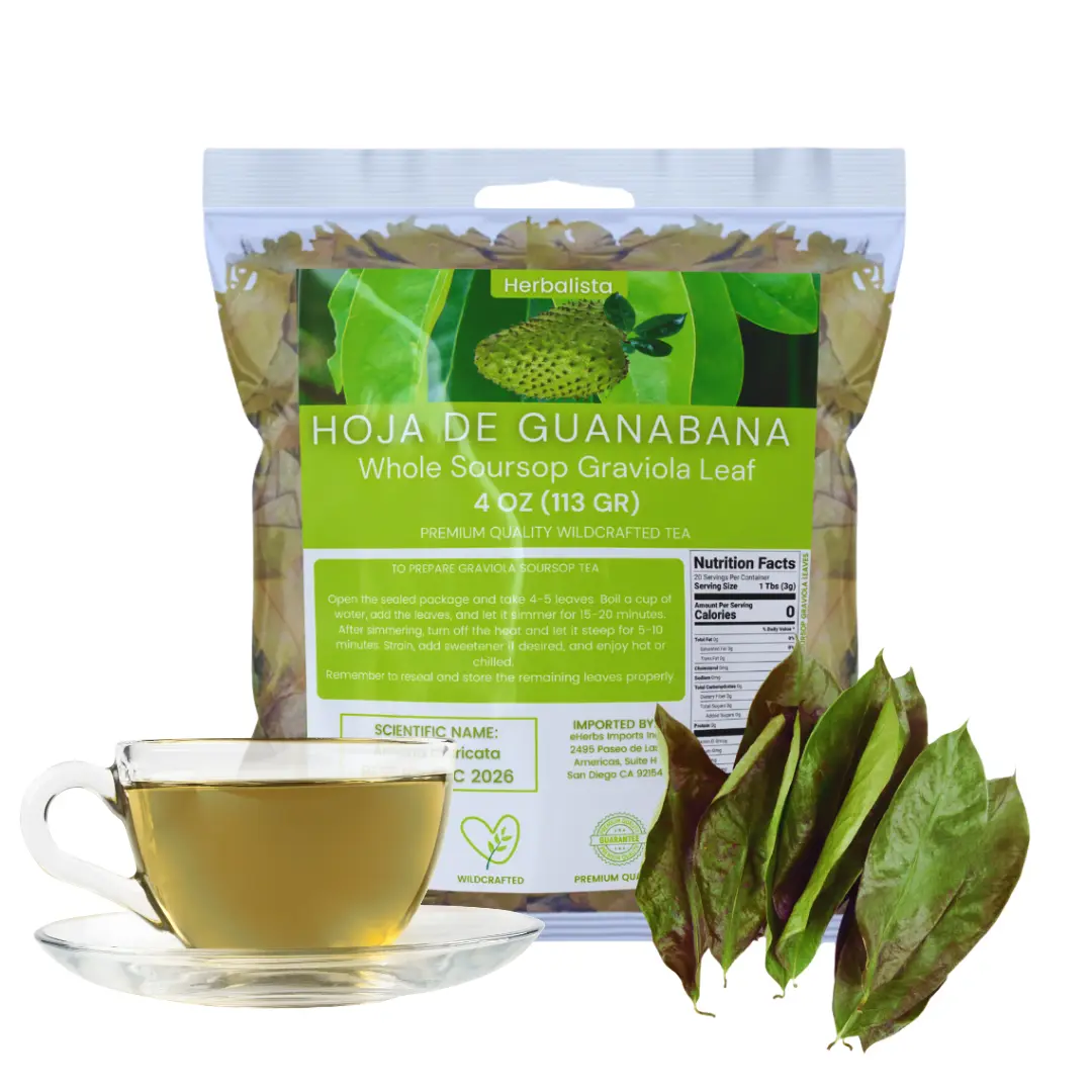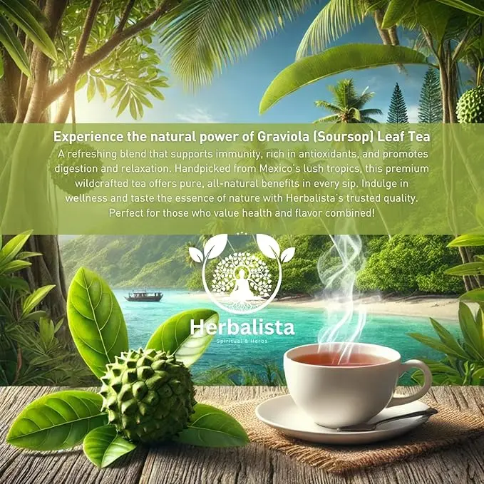 Dive into the essence of Herbalista's whole sun-dried Soursop Leaves. These 100% natural, non-GMO leaves boast a rich, earthy taste. Each 4 oz bag contains over 350 handpicked, wildcrafted leaves. Perfect for any time, they preserve freshness and integrity. Elevate your tea routine with authentic taste and aroma. Free from artificial additives, these leaves are naturally dried for high quality.