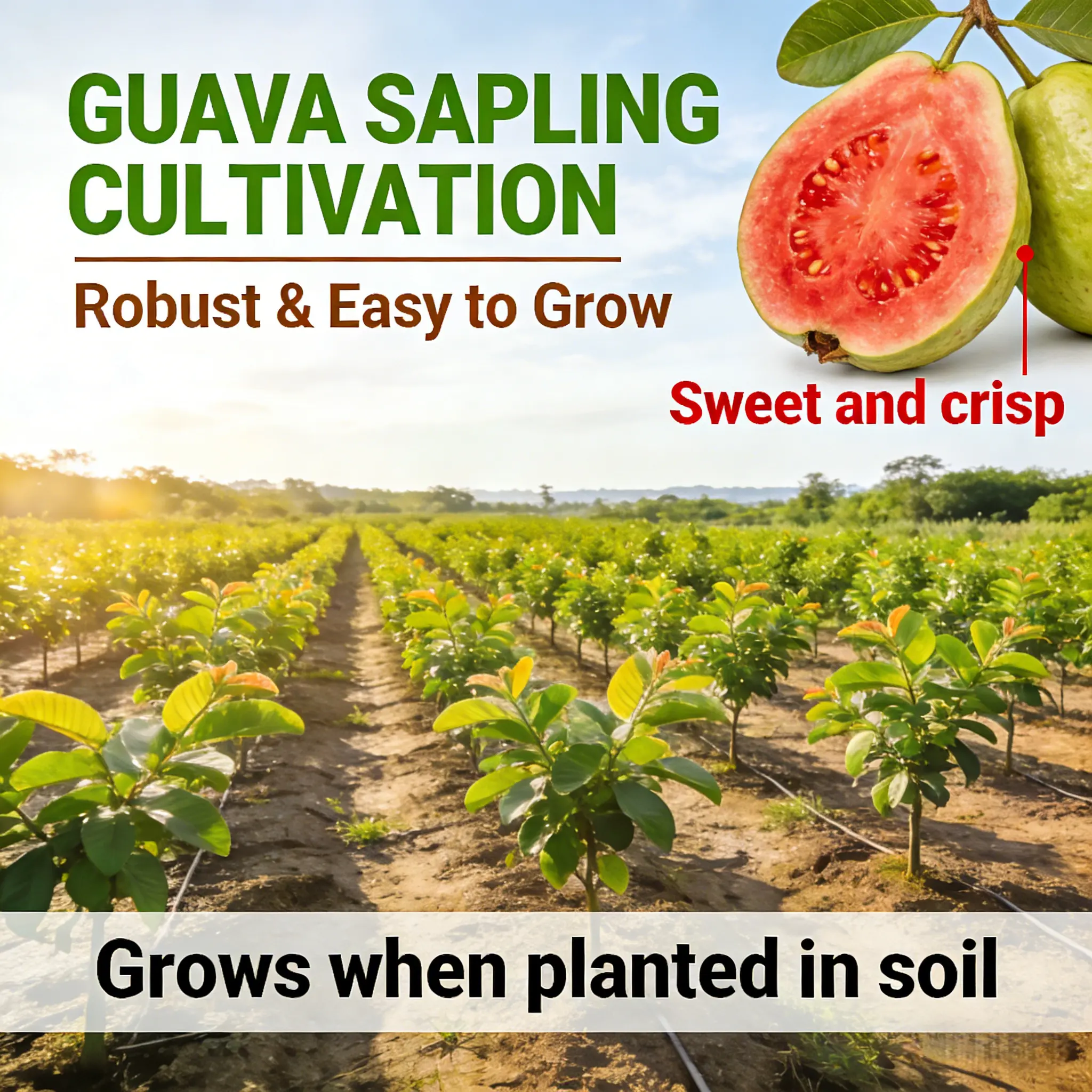 This guava plant is suitable for people who enjoy growing fruit trees at home. It can be placed in backyard gardens, patio planters, or large containers. With proper sunlight, watering, and care, the plant can grow into a small fruit tree that adds beauty and greenery to your garden environment.