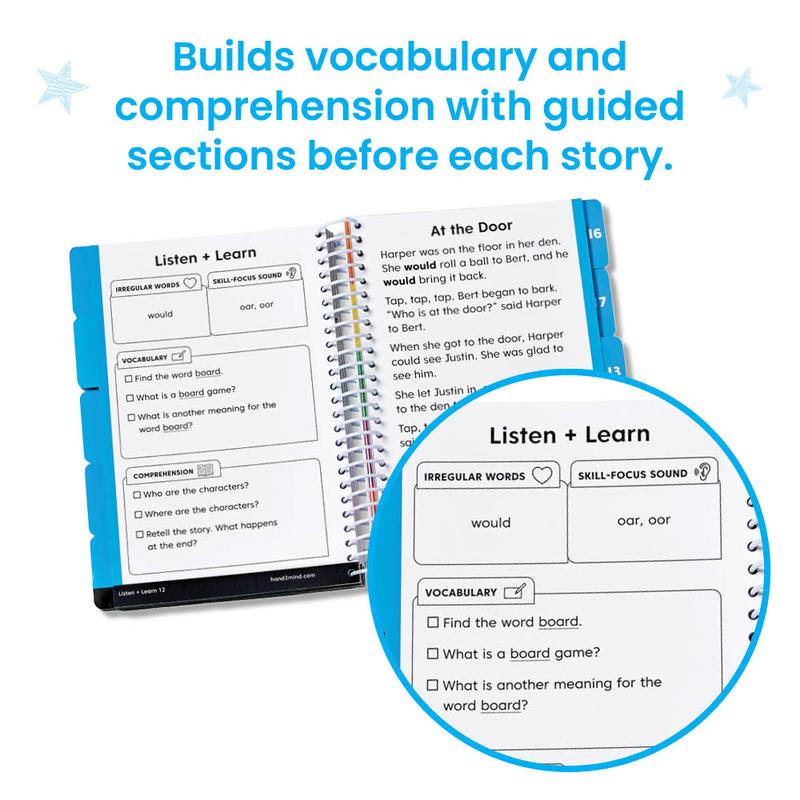 ·Build vocabulary and comprehension with guided sections before each story