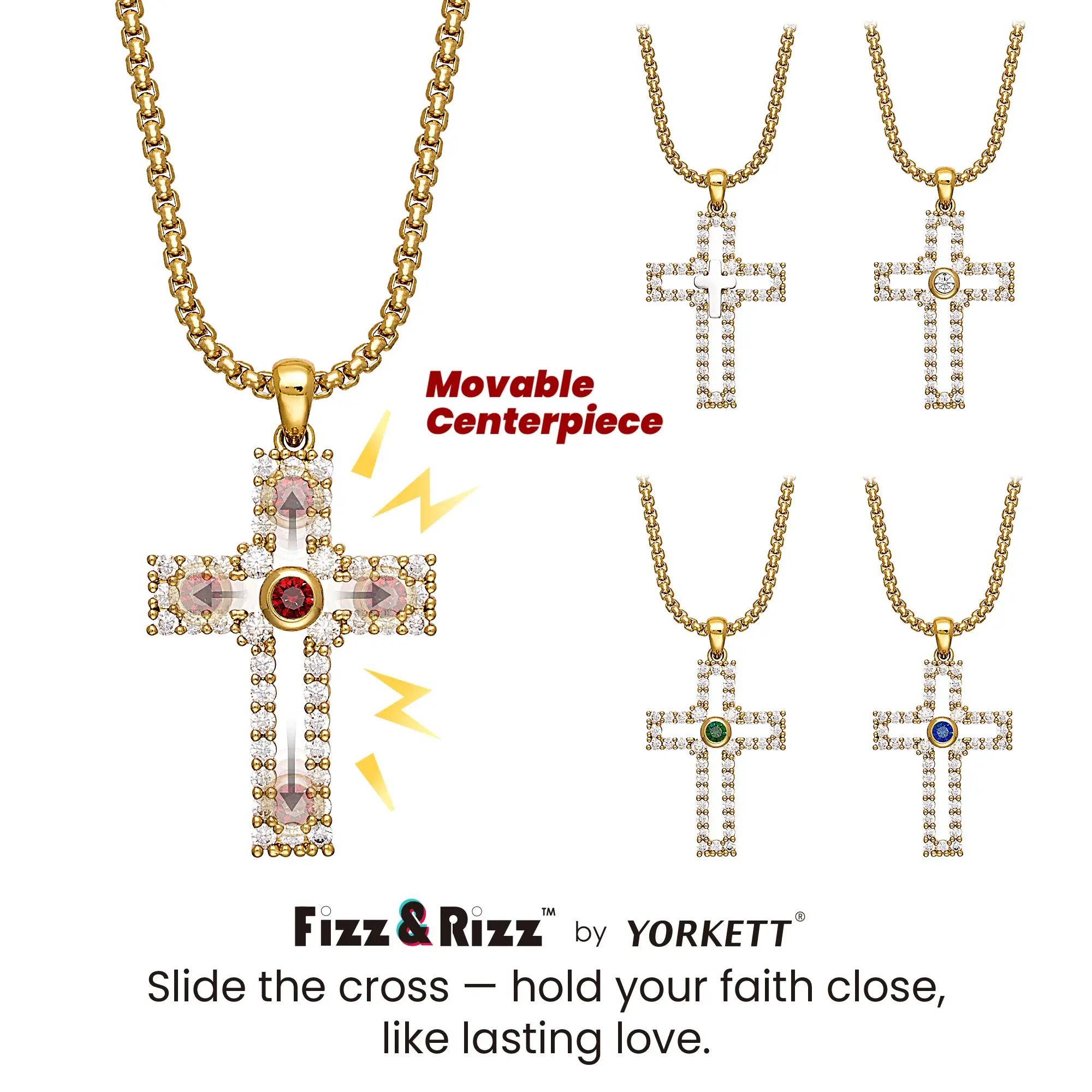 Customizable: Choose from 4 gemstone colors or a sleek cross.