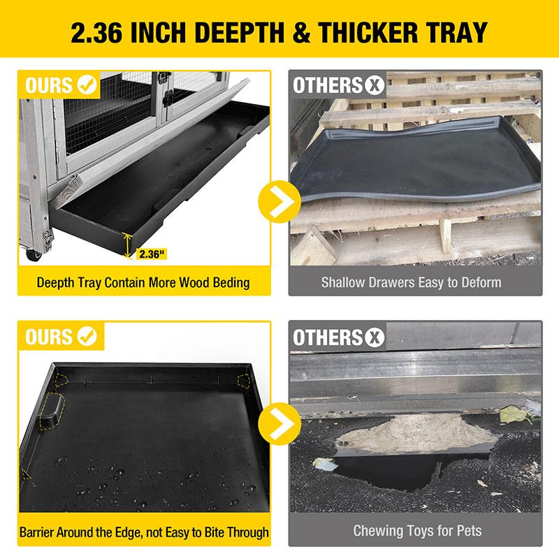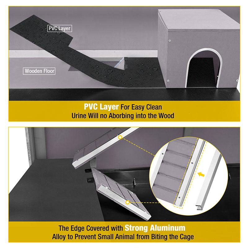 ·No-Smelly- The platform has a PVC layer for easy cleaning and urine will not absorb into the wood. The wire top keeps the cage dry and provides proper ventilation for your pet.