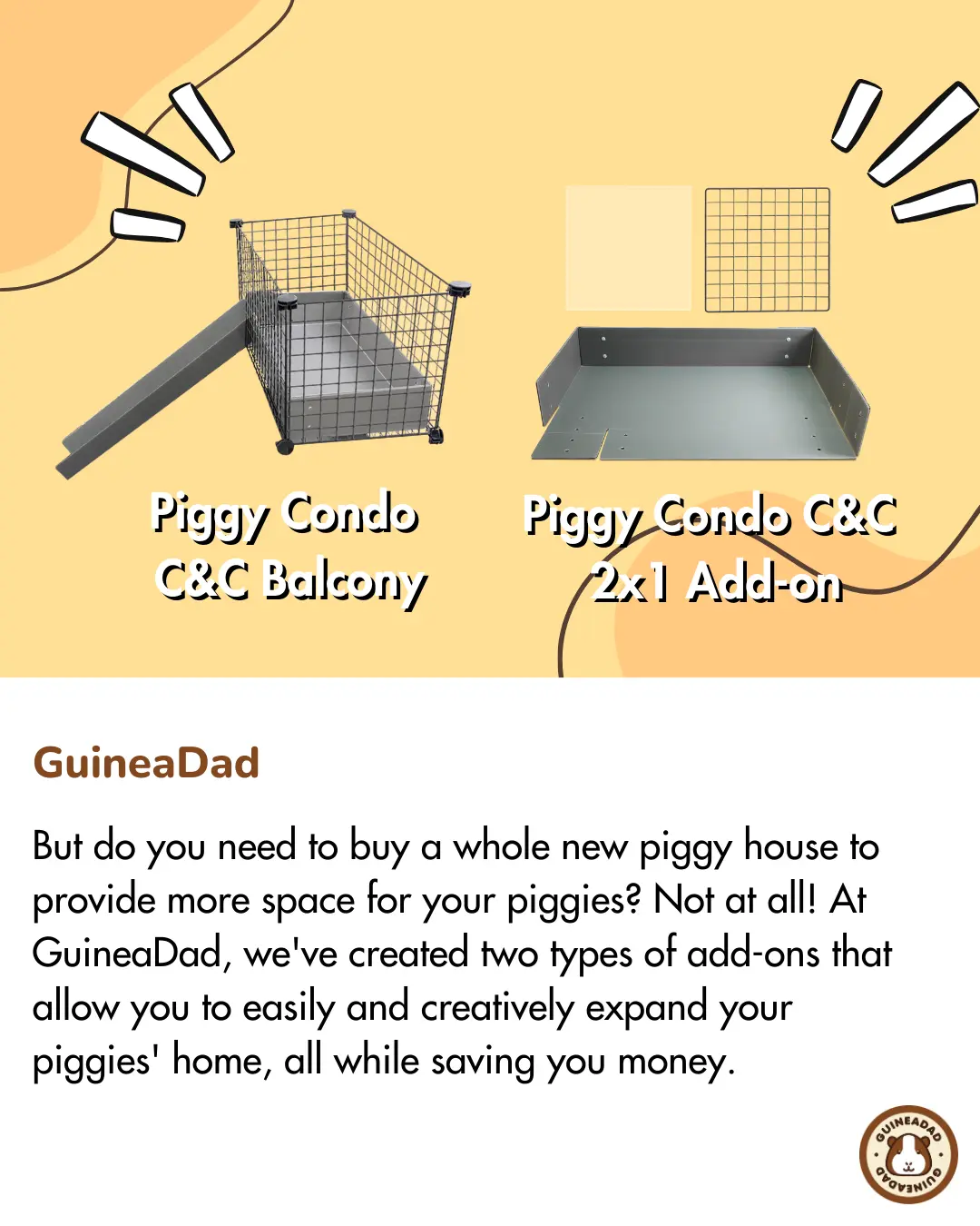 5. GuineaDad Piggy Condo 2x1 Guinea Pig Cage Add-On Kit (C&C)