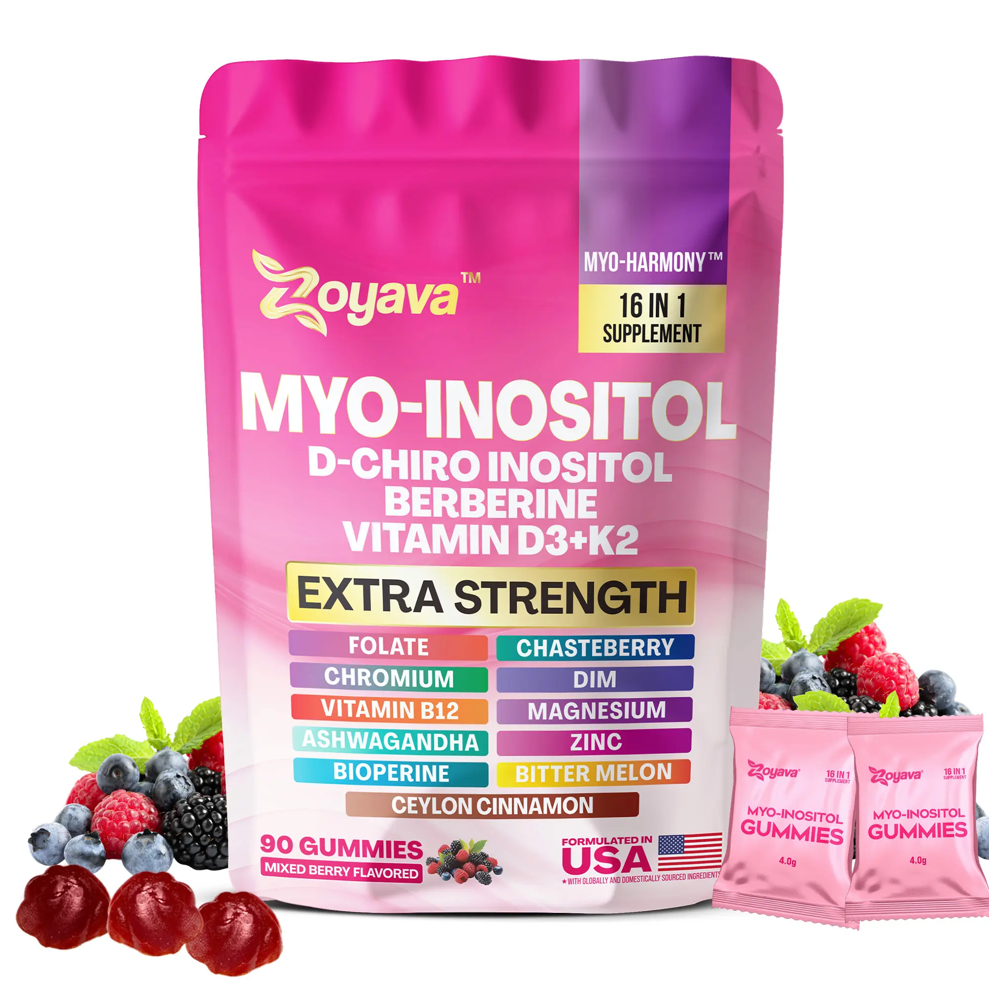 Zoyava Myo-Inositol Gummies – Mixed Berry Flavored Cycle & Hormone Support for Women