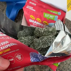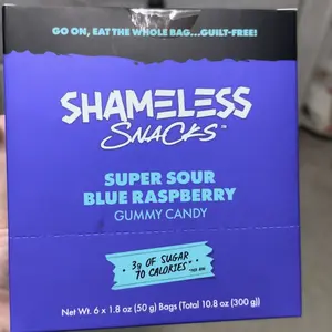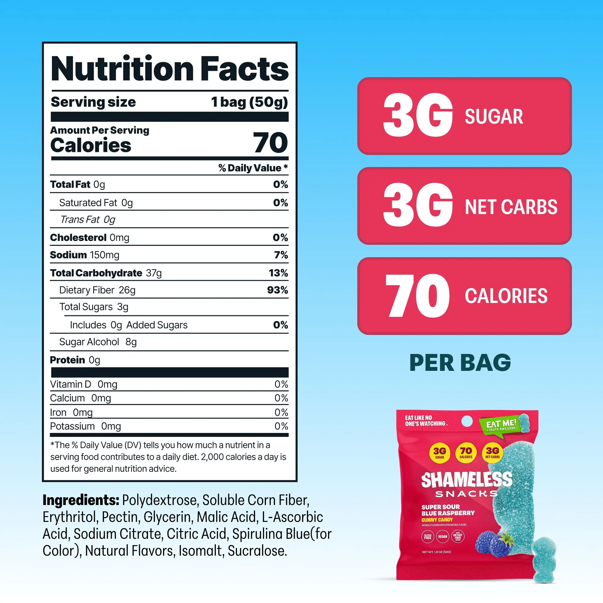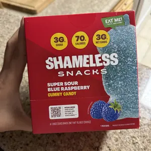 i enjoy these! similar to sour patch kids by being sugar coated but they are textured more like fruit snacks to me. 26g dietary fiber.. these are very sweet…. it says super sour but TO ME it doesn’t give any sour. i enjoy my purchase regardless! 70cal bags of candy that tastes good? it’s a win 🏆
