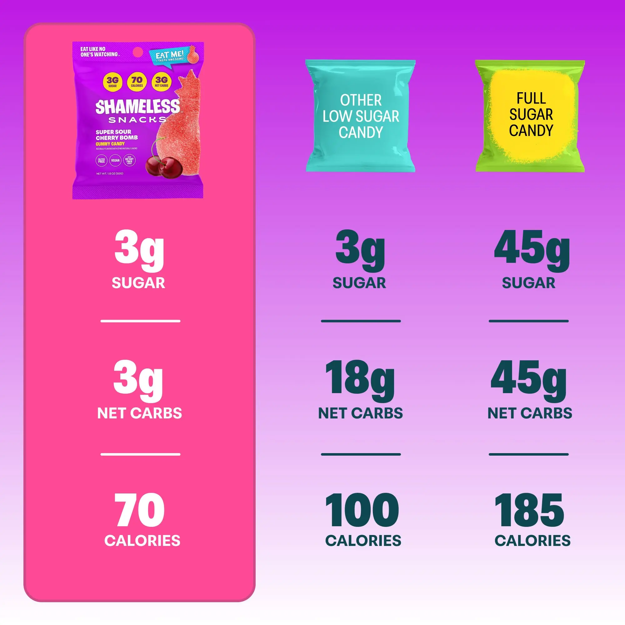 Love the chewy and sourness of these cherry bomb gummies. The right amount of sweet and tart.