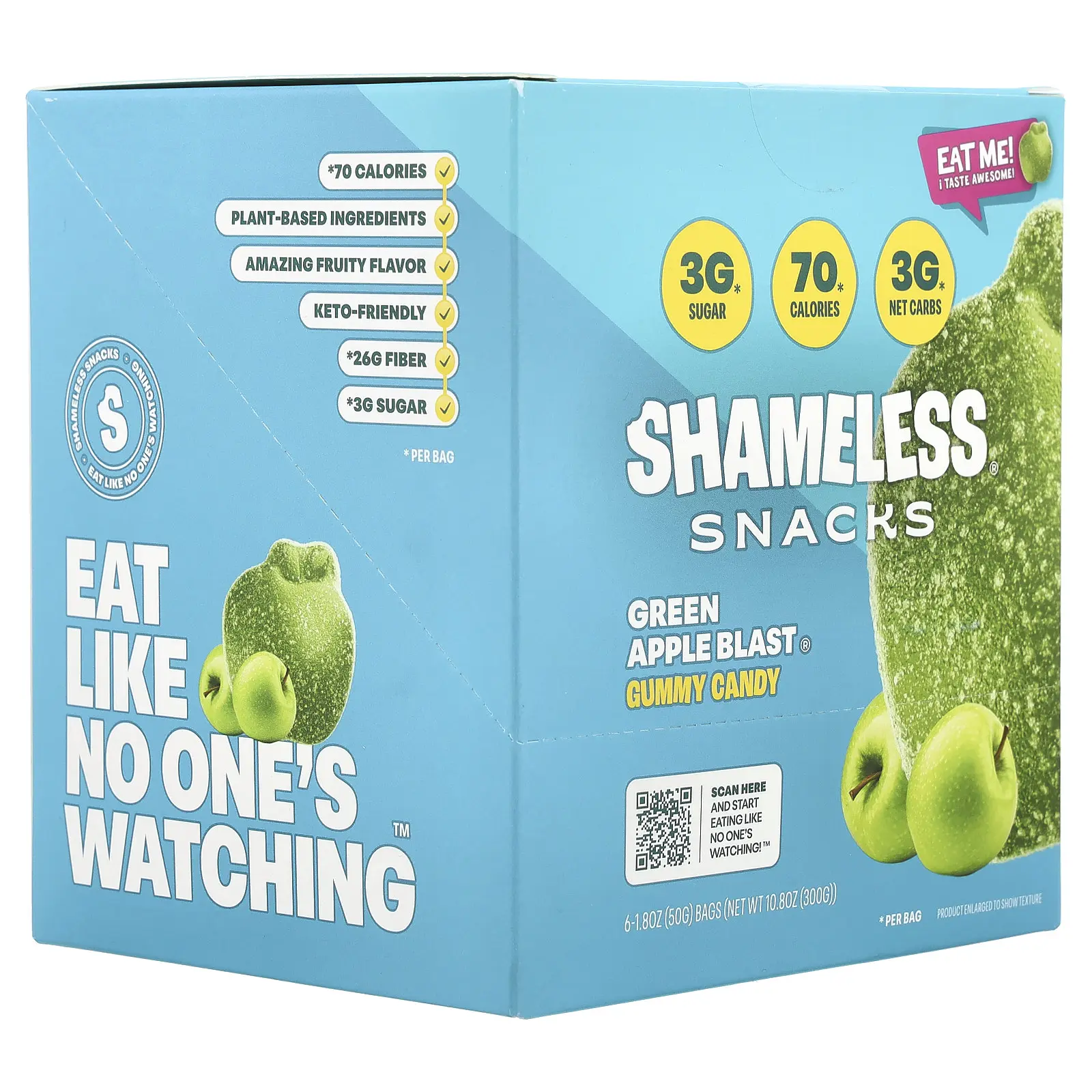 Shameless Snacks Gummy Candy, Green Apple Blast®, 6 Bags, 1.8 oz (50 g) Each