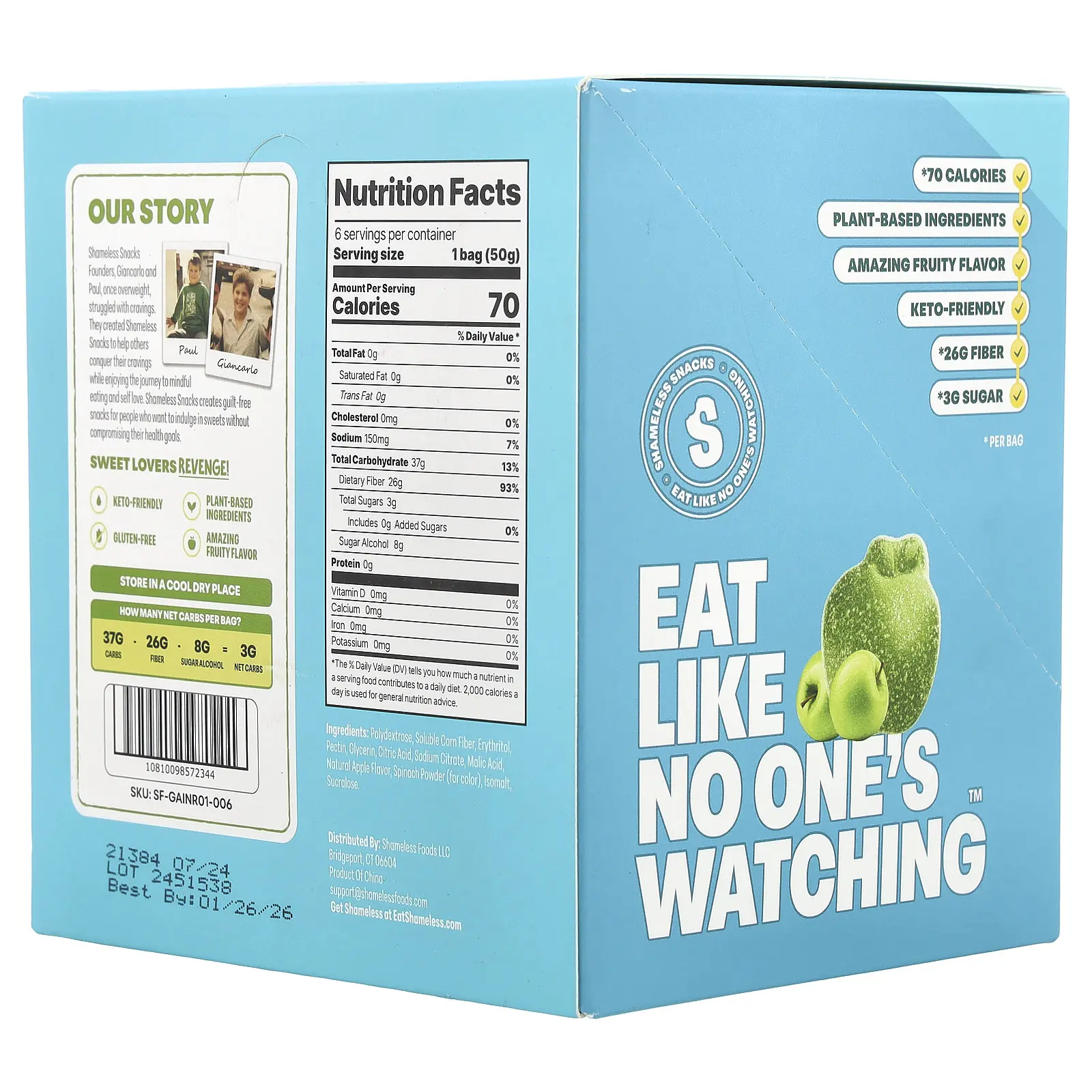 5. Shameless Snacks Gummy Candy, Green Apple Blast®, 6 Bags, 1.8 oz (50 g) Each
