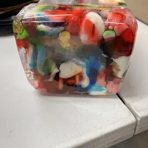 I want to give this 5 stars but when I got it today it’s a melted lump of goo so my 5 pound jar I was excited to get to take on our road trip yuck. Yes I put it in the fridge as soon as I got it out of the box. But they are all melted together and the candy is ruined. Very sad